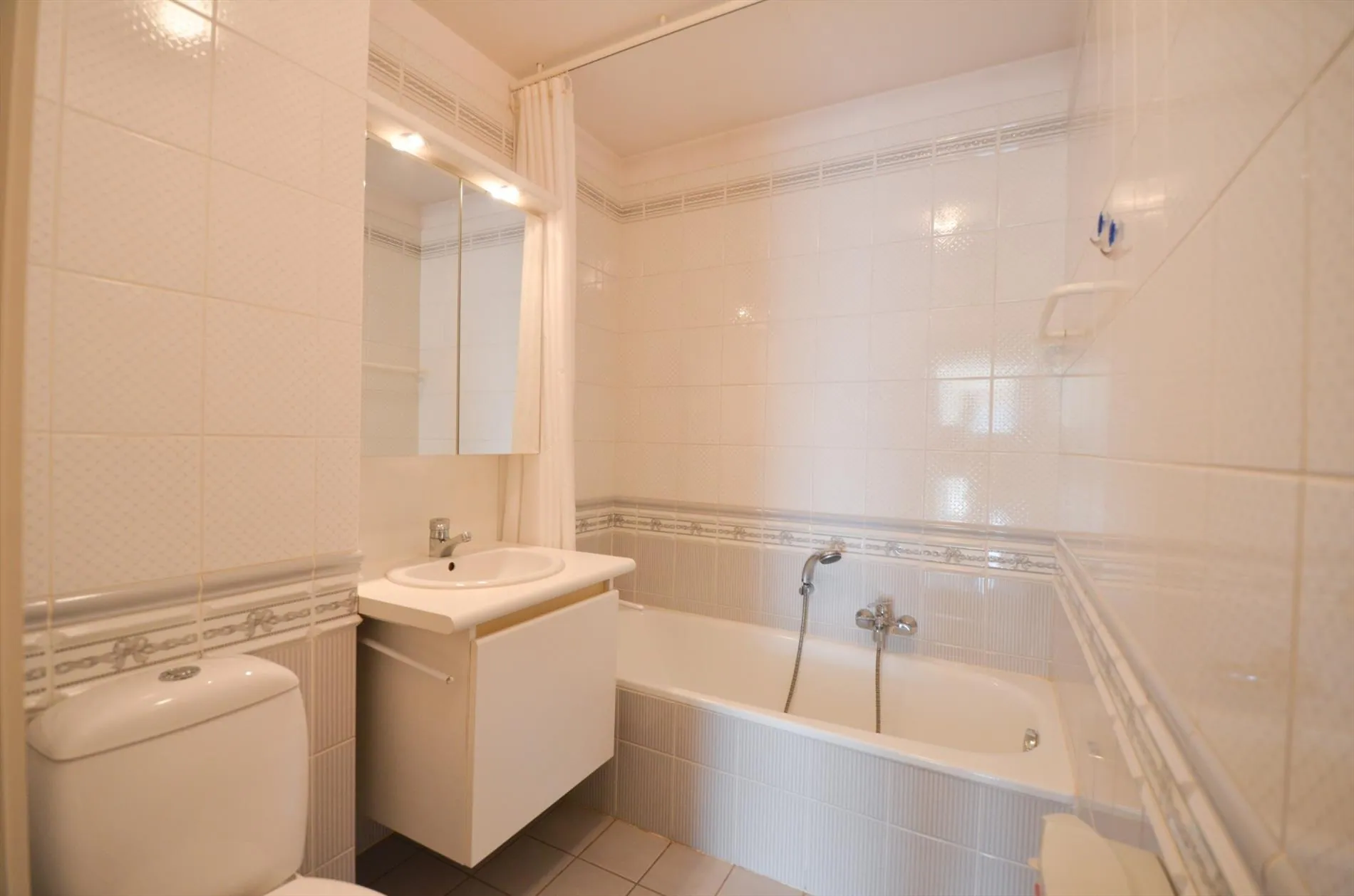 Eine Schlafzimmer hat eine Badezimmer mit Badewanne, Waschbecken und Toilette; die andere hat eine Düschezimmer mit Düsche und Waschbecken, jeder sein Komfort!