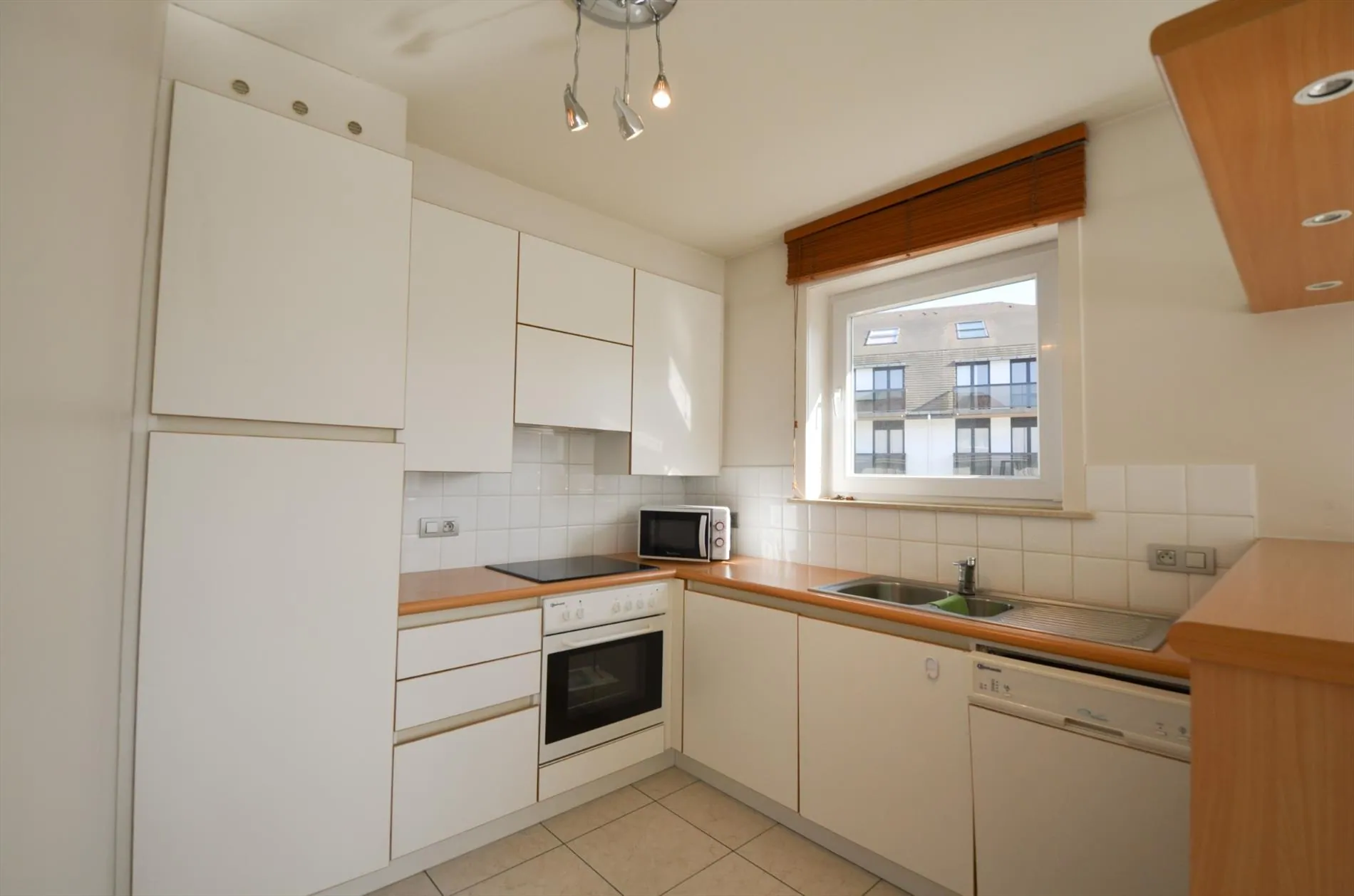 Das Appartement hat eine große Wohnzimmer mit anschließend Balkon. Eine schöne halb-geöffnete Küche biedet Ihnen viele Kochmöglichkeiten.