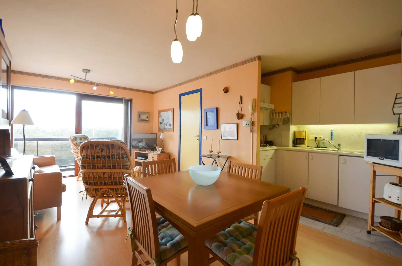Angenehmes, geraümiges Duplex-Appartement für 4-6 Personen mit viel Sonne!Dieses Appartement mit Möbel hat eine schöne Wohnzimmer, gut ausgestättete Küche und separates Abstellraum mit Waschmaschine. Sie haben auch eine Gästetoilette.