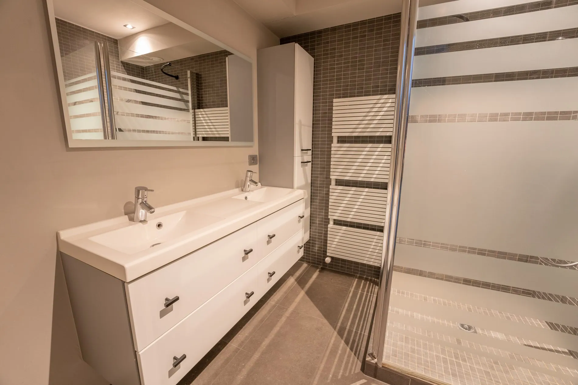 Der Blick auf den Strand und die Dünen steht im Mittelpunkt dieses geschmackvollen Appartements direkt an der Strandpromenade. Die exzellente Verarbeitung mit Parkettboden und einer modernen offenen Küche verleiht der Wohnung ein warmes, stilvolles Ambiente. Mit zwei Schlafzimmern — eines mit Doppelbett und eines mit zwei Etagenbetten — bietet die Unterkunft reichlich Platz für sechs Personen. Neben den zwei Balkonen verfügt das Appartement über ein Badezimmer mit bodengleicher Dusche und Doppelwaschbecken. Eine private Garagenbox unterhalb der Promenade ist zudem inbegriffen.