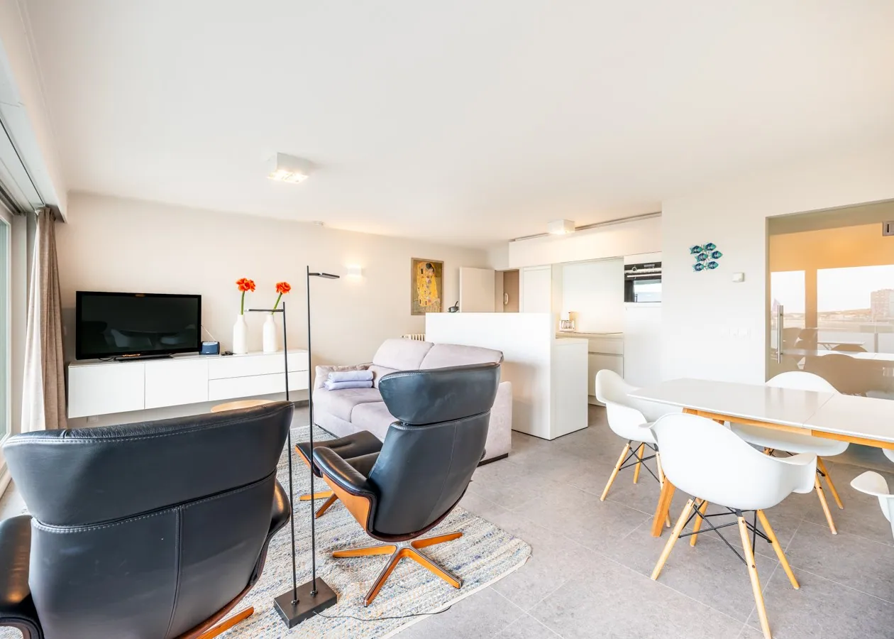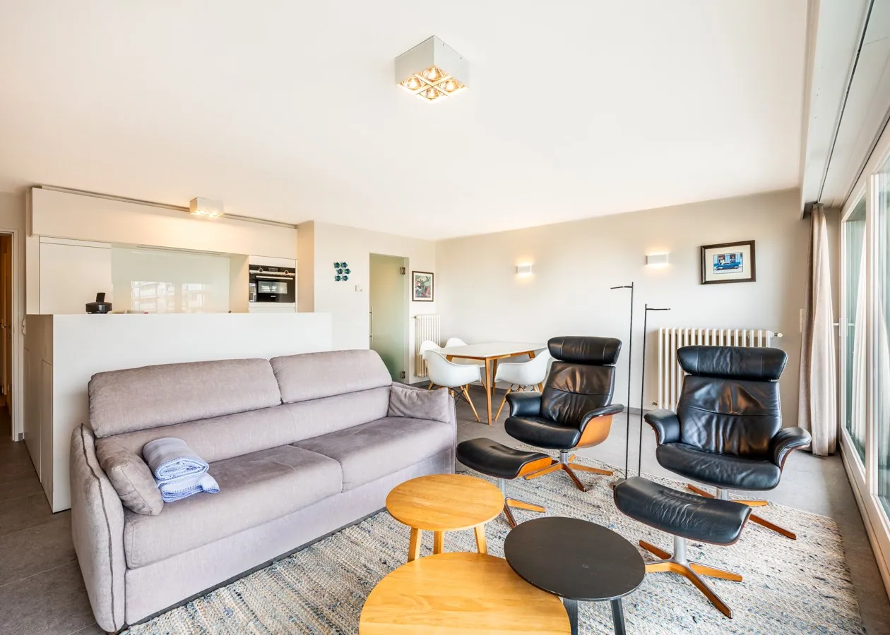 Diese modern eingerichtete Wohnung an der Strandpromenade verfügt über ein lichtdurchflutetes Wohnzimmer mit offener Küche und eine angrenzende Sonnenterrasse mit Meerblick. Die Aufteilung umfasst ein Schlafzimmer, ein Badezimmer mit begehbarer Dusche und einen Eingangsbereich mit separatem WC. Ein gepflegtes und zeitgemäßes Domizil in zentraler Lage.