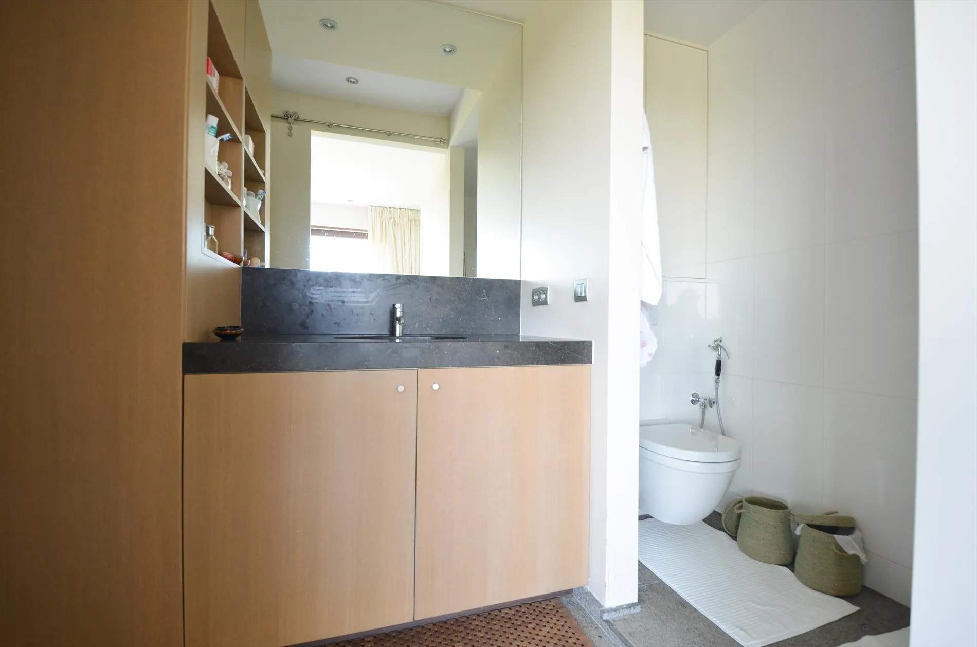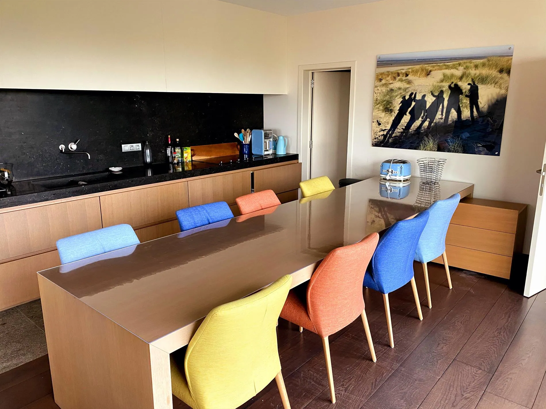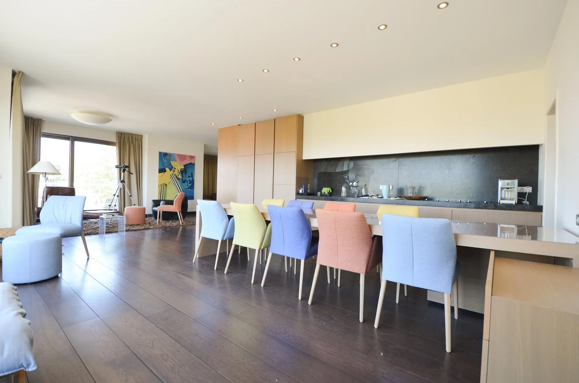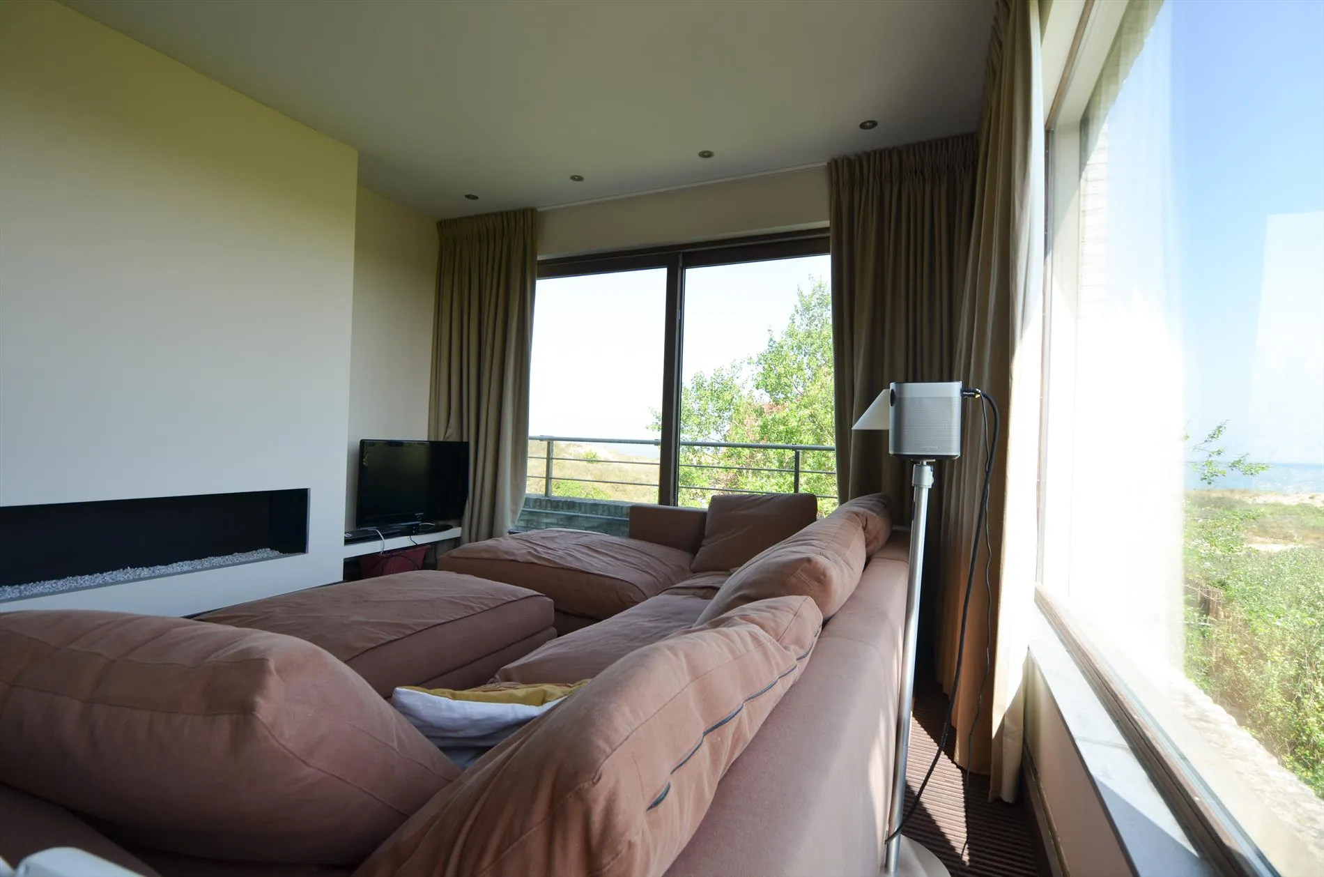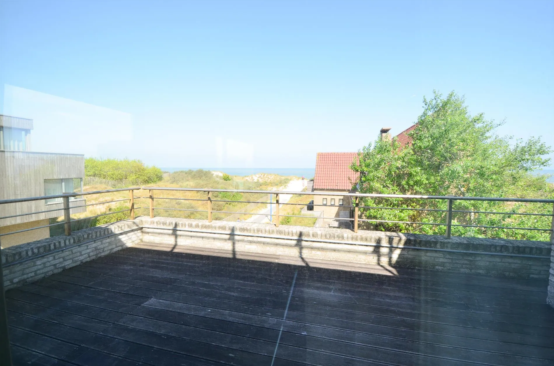 Diese Wohnung bietet einen Panoramablick auf das Meer und die Dünen. Der Wohnbereich verfügt über eine offene Luxusküche und bietet Zugang zu einer weitläufigen Terrasse. Die Aufteilung ist einzigartig: Drei Schlafzimmer sind jeweils mit einem eigenen Badezimmer ausgestattet. Zudem gibt es einen separaten Abstellraum mit Waschmaschine und Trockner. Eine private Garage unter dem Gebäude ist im Preis inbegrepen.