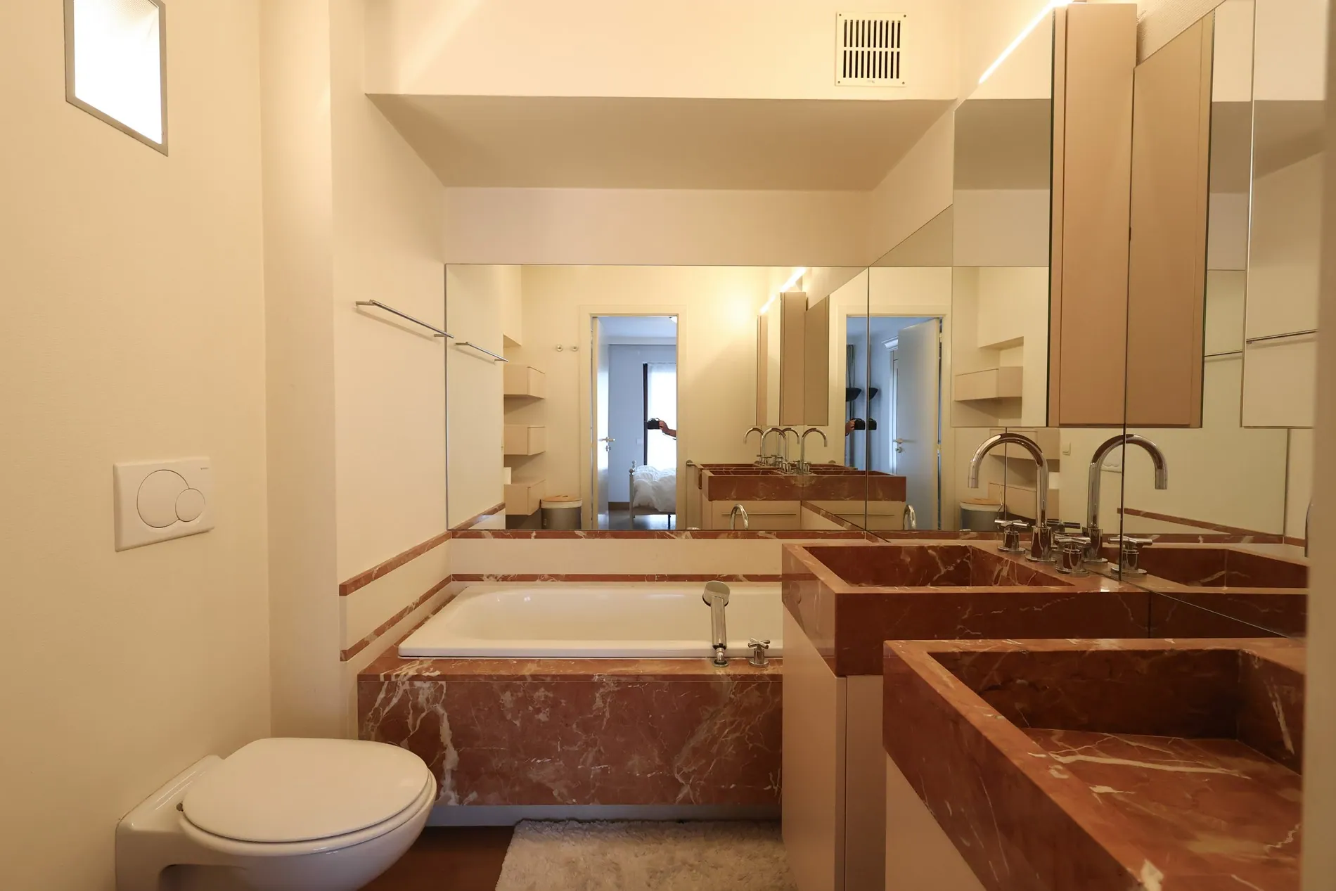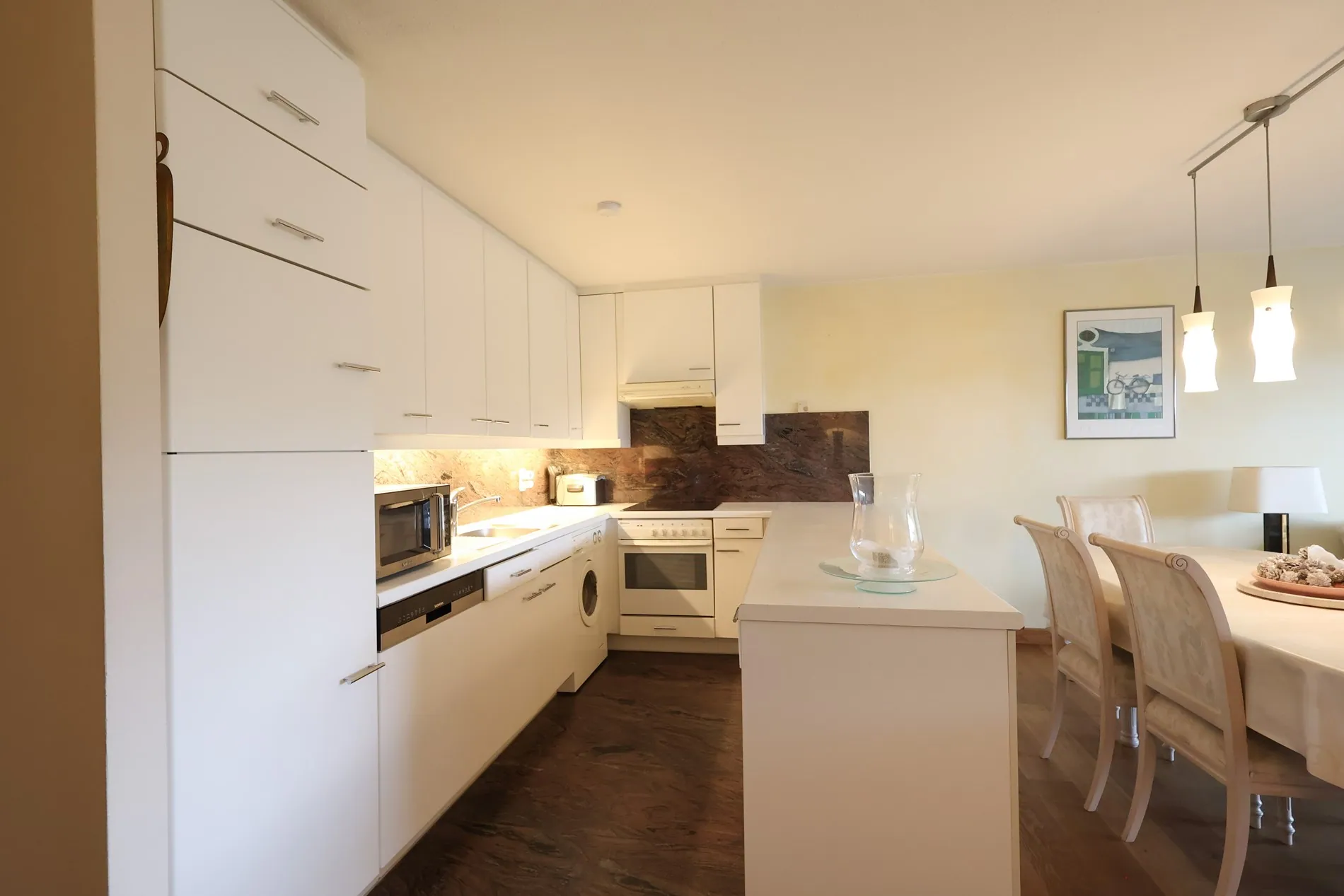 Die zwei Terrassen dieses großzügigen Erdgeschoss-Appartements laden unmittelbar zum Verweilen ein: Während das Wohnzimmer an der Vorderseite von der Abendsonne verwöhnt wird, bietet die große private Terrasse auf der Rückseite ein wahres Sonnenparadies. Mit drei Schlafzimmern, die jeweils mit einem Doppelbett ausgestattet sind, bietet die Wohnung hochwertige Schlafmöglichkeiten für sechs Personen. Die Aufteilung überzeugt mit einem Badezimmer mit Badewanne sowie einem separaten Duschbad. Zusätzliche Annehmlichkeiten wie eine Waschmaschine und ein privater Parkplatz im Gebäude vervollständigen den Komfort in dieser erstklassigen Lage zwischen Strand und Zentrum.
