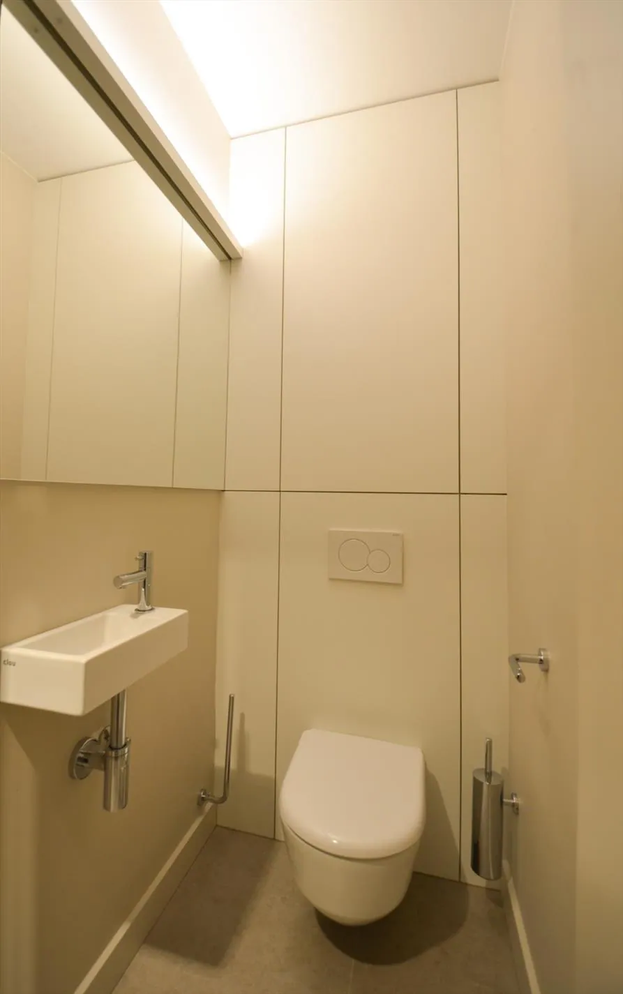 In de hall beschikt u over een ruime berging met voorziening voor wasmachine, een apart toilet, een badkamer en 2 slaapkamers. Verder zijn er in de hall verschillende ingemaakte kasten voorzien en een vestiaire kast.