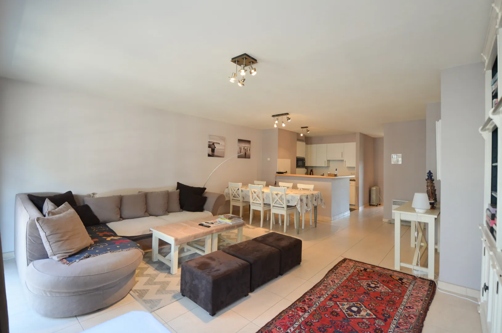 Het modern appartement bestaat uit een ruime living met vloerverwarming en ingerichte keuken met alle toestellen.In de hal heeft u een apart gastentoilet, 3 slaapkamers, een badkamer en een berging.