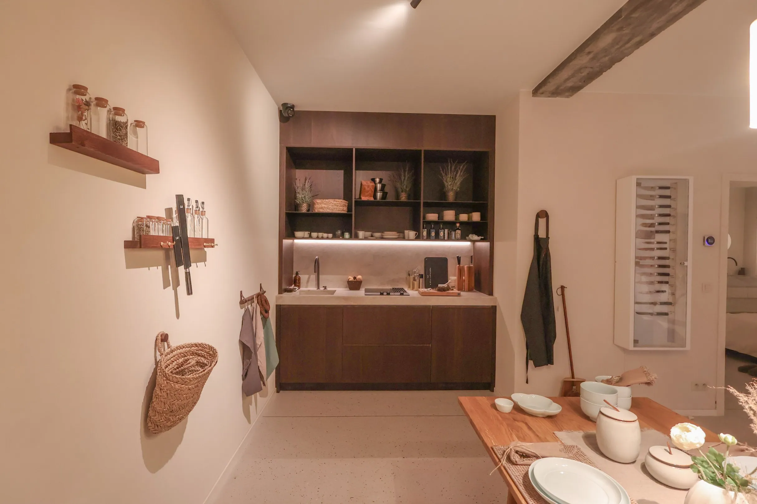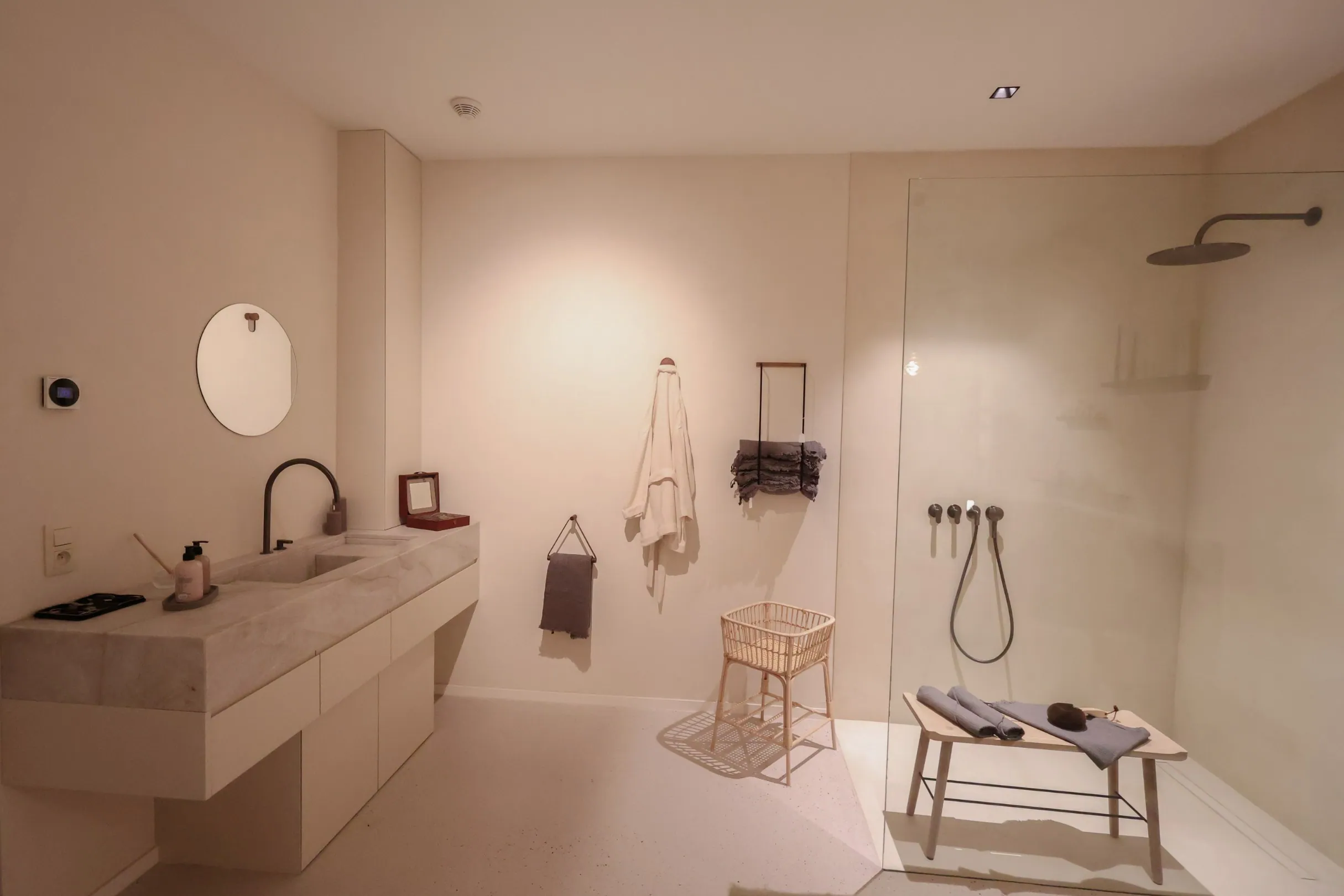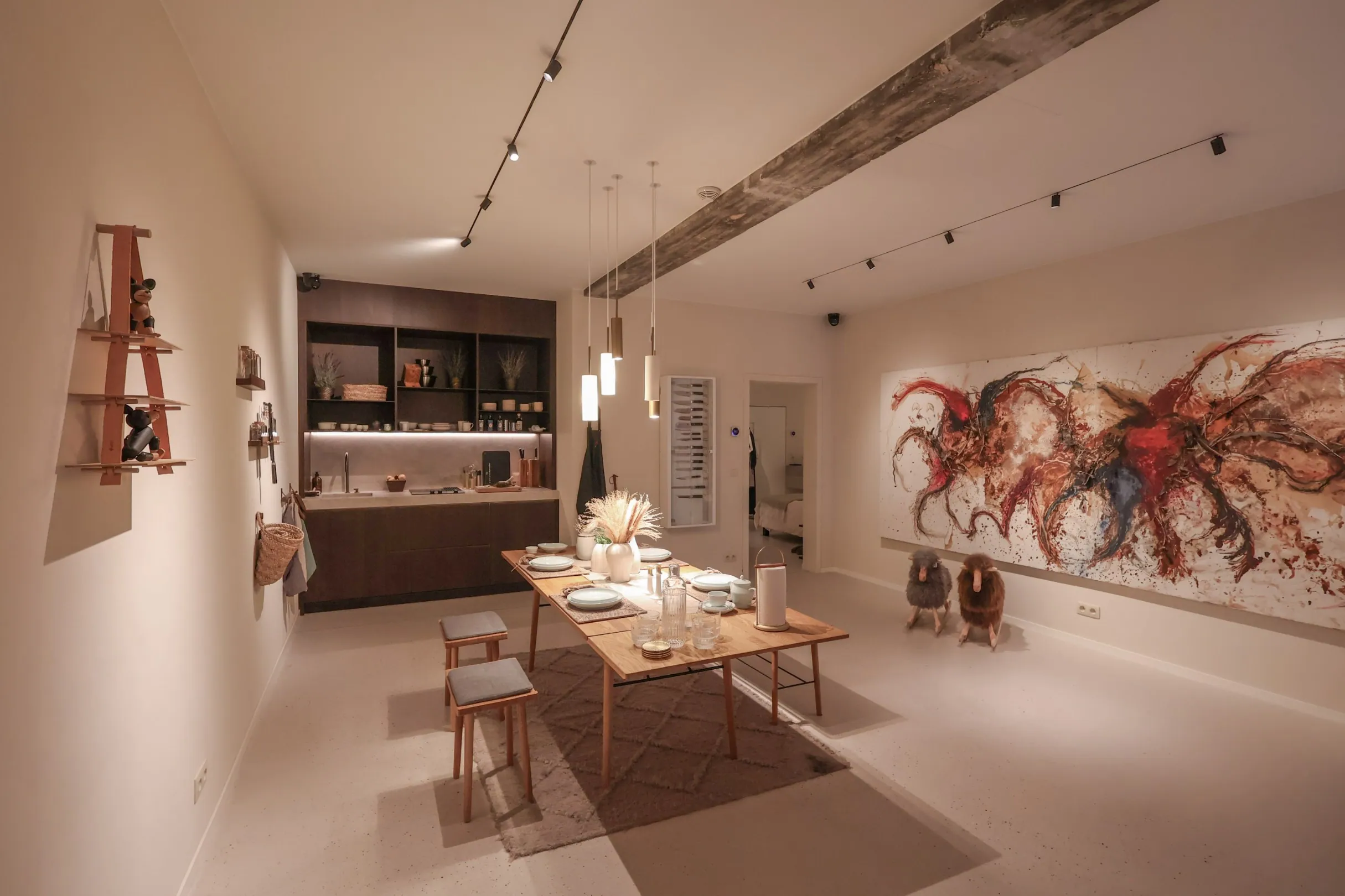 Op een unieke locatie, pal aan de Zeedijk in het hart van Oostduinkerke-Bad, ligt dit recent gerenoveerde appartement van 109 m². Oorspronkelijk uitgebaat als boetiek, werd het pand met oog voor detail en hoogwaardige materialen omgevormd tot een instapklare, stijlvolle woonruimte.Elke ruimte ademt kwaliteit en verfijning. De terrazzo vloeren vormen een tijdloze basis, terwijl de muren in leem-look Quartz een warme, natuurlijke sfeer creëren. De douche is afgewerkt in beton ciré, wat een moderne en luxueuze uitstraling geeft.