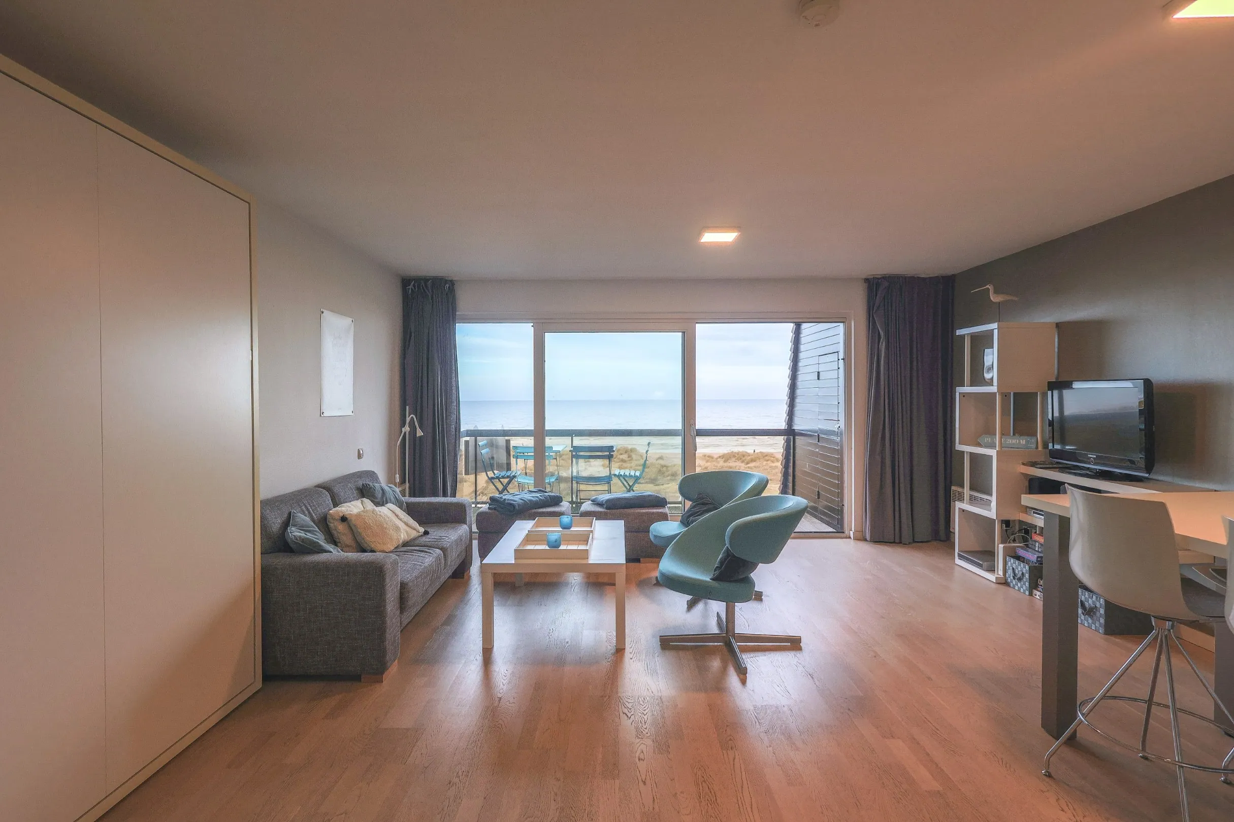 Instapklare, moderne studio met prachtig zeezicht!Voor de studio bevindt zich een wandelpad tussen de duinen en de verkeersvrije zeedijk. U geniet hier van prachtig zee- en duinenzicht en eveneens van de late namiddag- en avondzon.