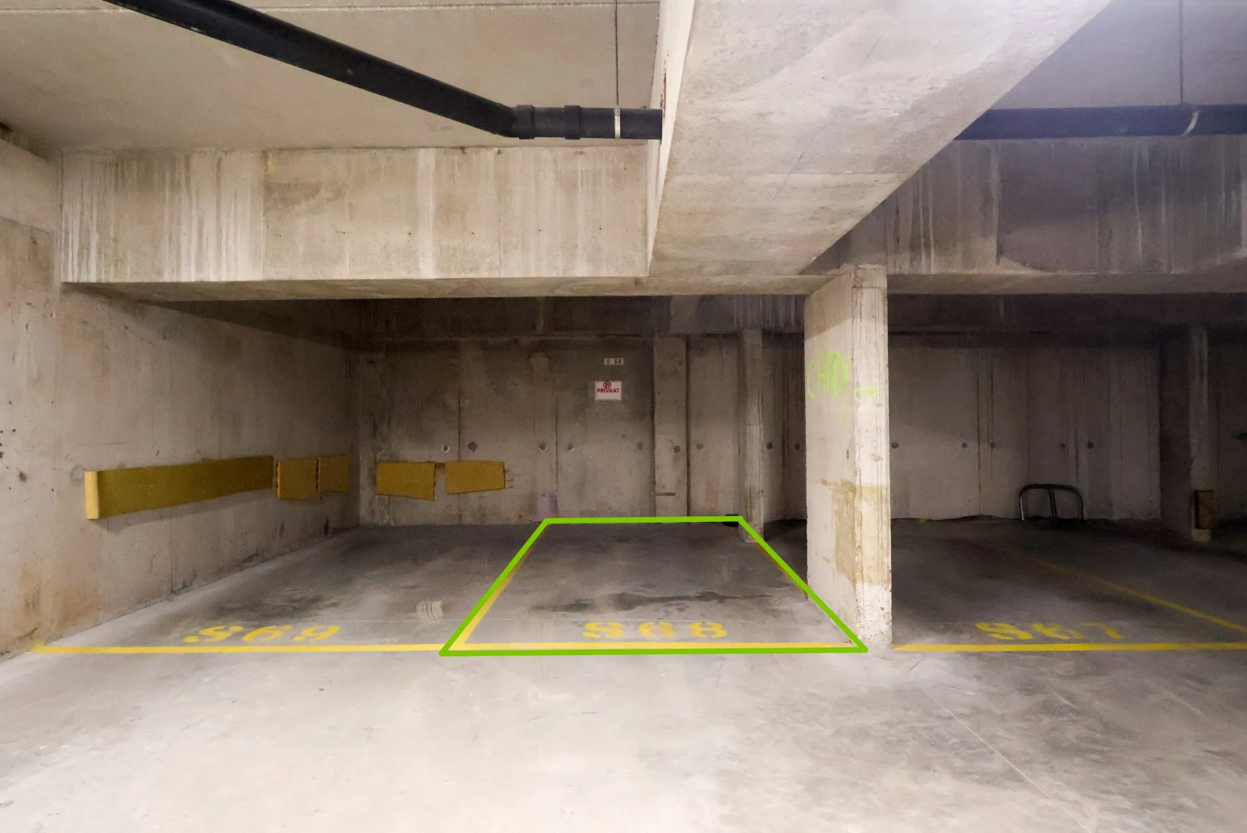In het garagecomplex beschikt u over een privatieve kelderberging en een eigen staanplaats, beide inbegrepen en vlot bereikbaar.
