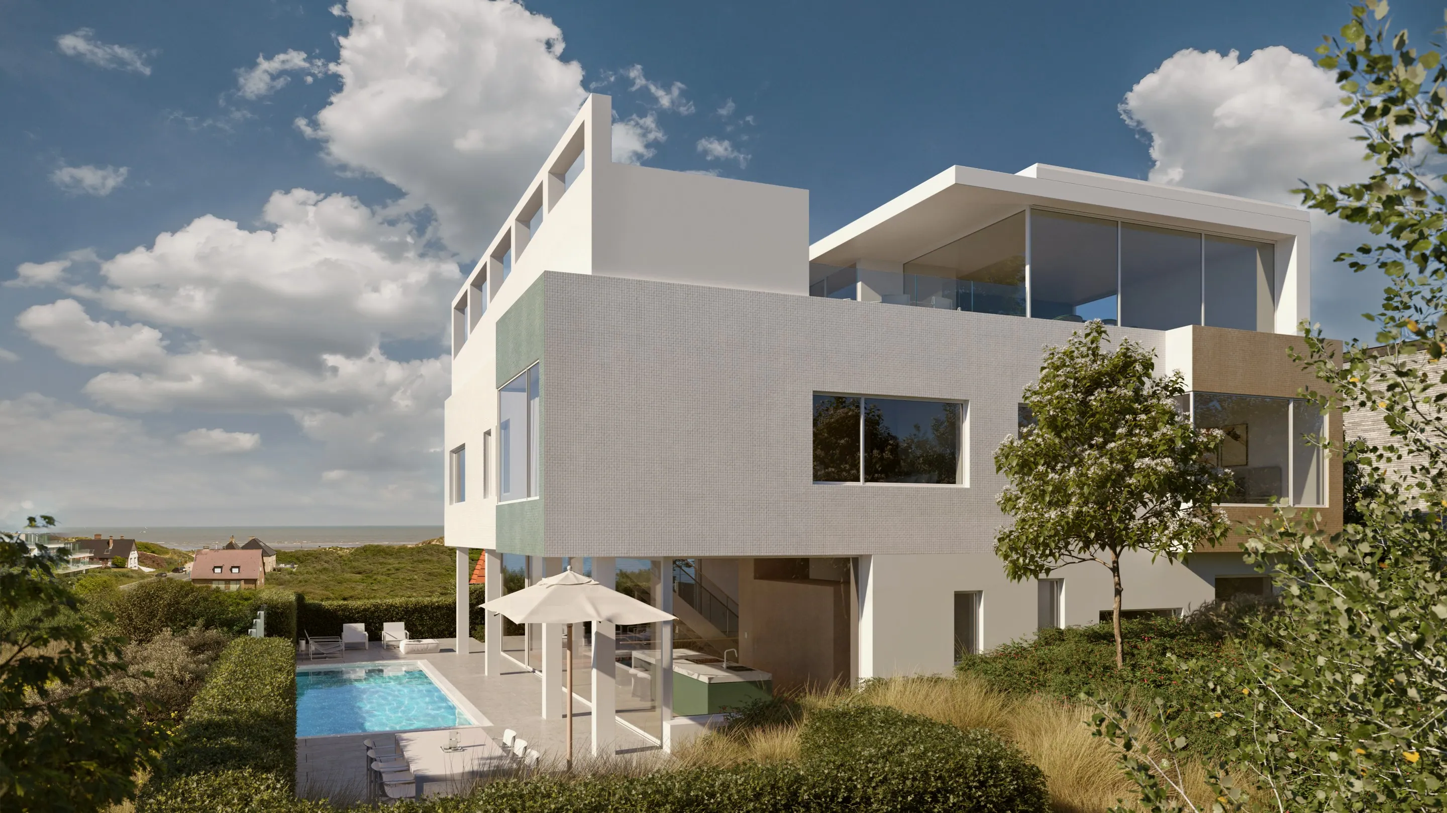 Villa H is een uniek samenspel van architectuur, ruimte en natuur, op een absolute toplocatie in Oostduinkerke. Een woonervaring voor wie enkel het beste wil — waar u zich letterlijk op het hoogste punt van de kust bevindt.