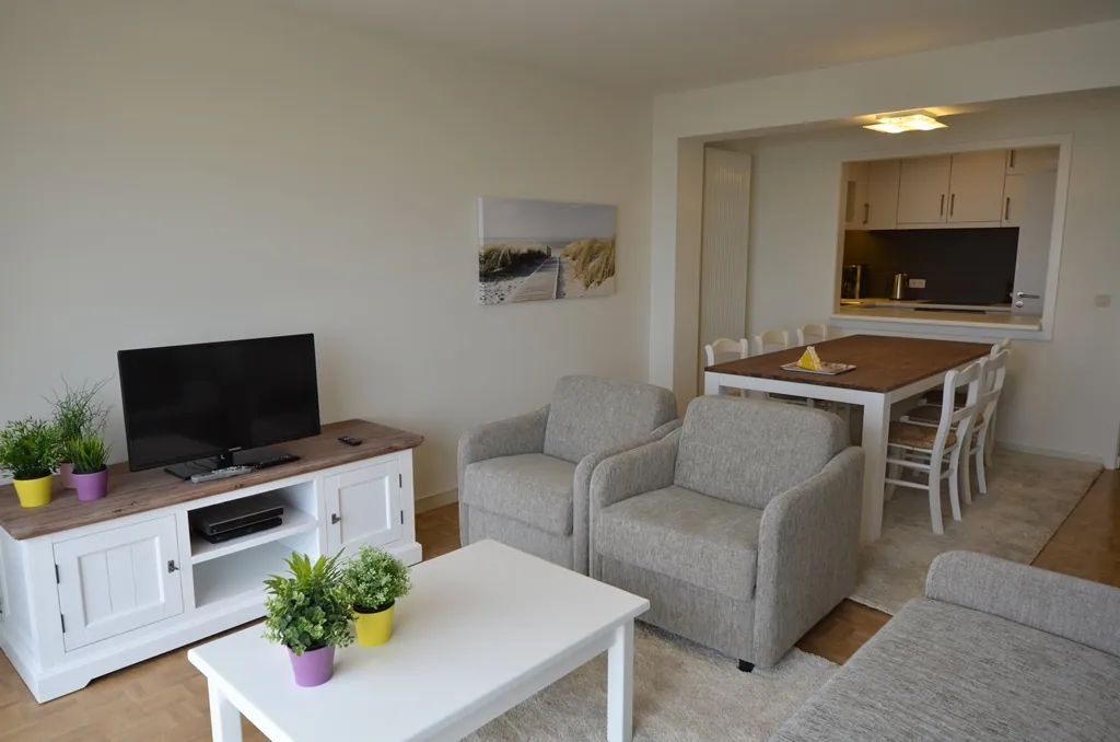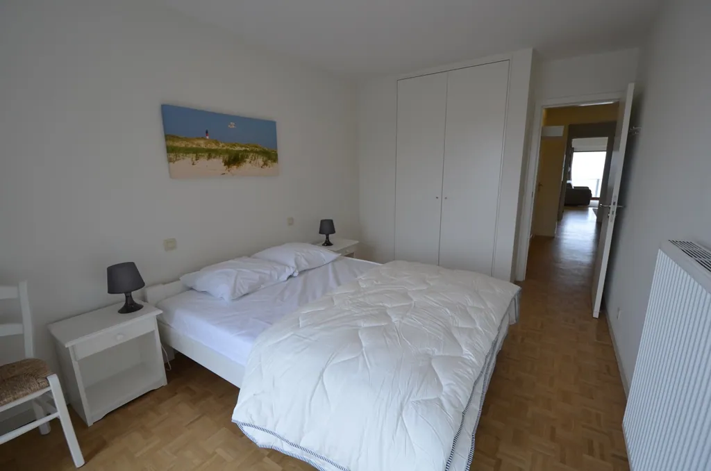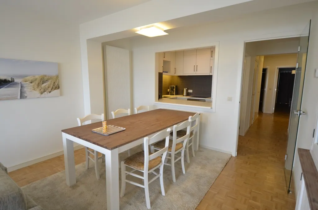 epuis le séjour spacieux, la vue plonge directement sur la plage et la mer. L'appartement, doté d'un aménagement raffiné, dispose d'une cuisine moderne et d'une salle de douche. L'espace nuit propose deux chambres, l'une avec un lit double et l'autre avec deux lits simples. Un garage privé est inclus, complétant parfaitement les prestations de ce bien.