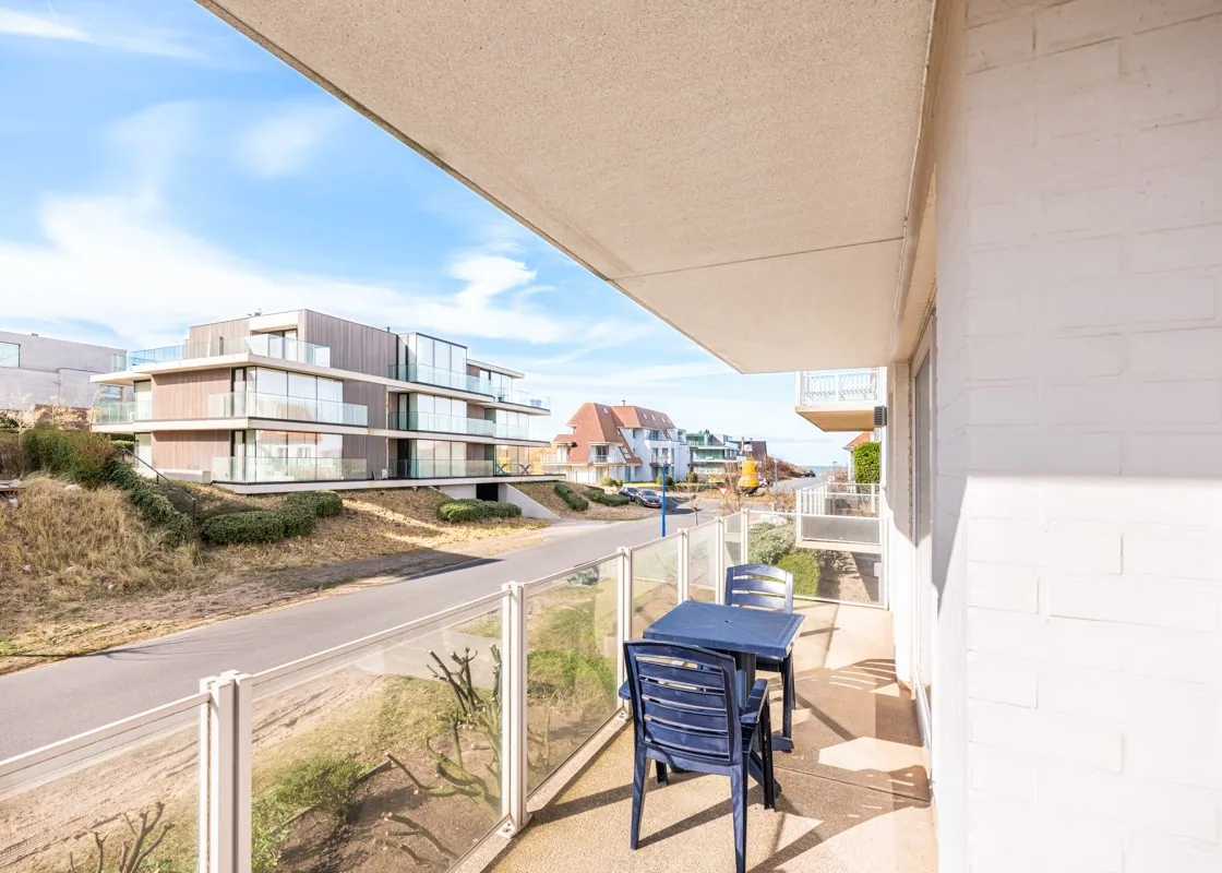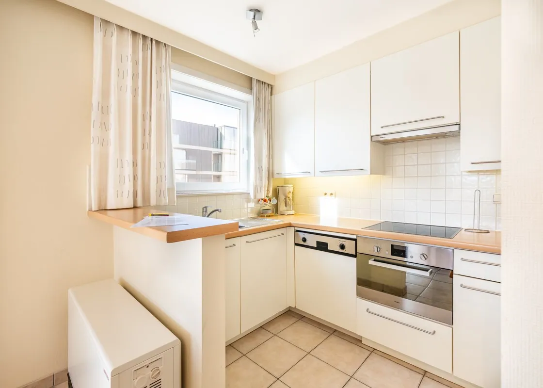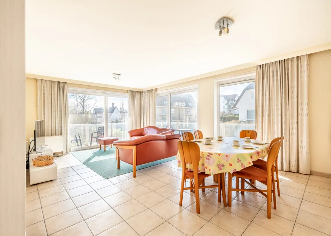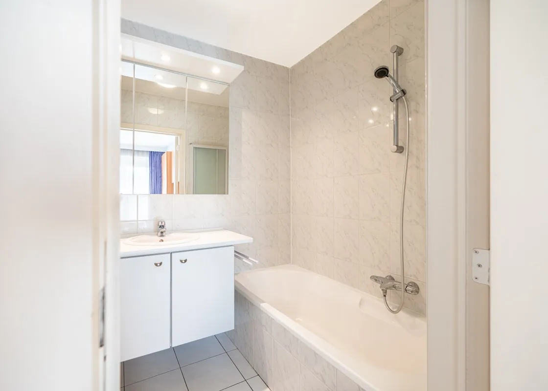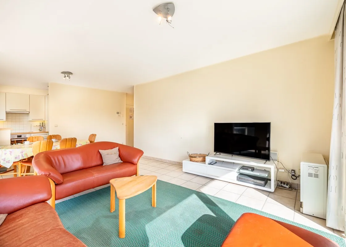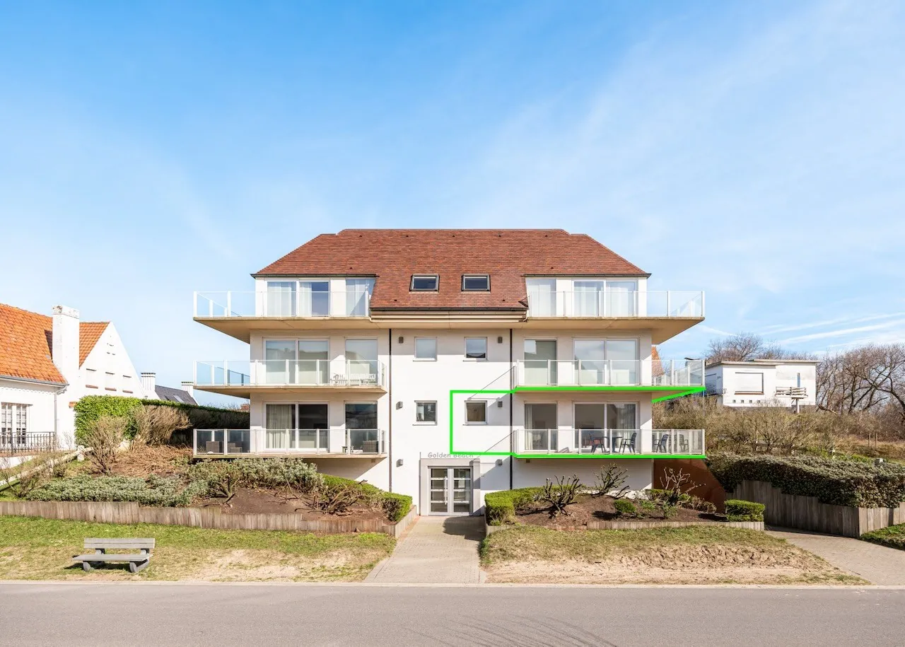 Dit eigentijdse hoekappartement op de eerste verdieping baadt in het licht en kenmerkt zich door een open en luchtig karakter. De woonkamer vloeit over naar een groot, zonnig terras en sluit aan op een keuken die van alle modern comfort is voorzien. Met twee slaapkamers, een badkamer én een douchekamer biedt de indeling volop plek aan een gezelschap van vier tot vijf personen. Een privé-parkeerplaats in het gebouw hoort bij de woning.