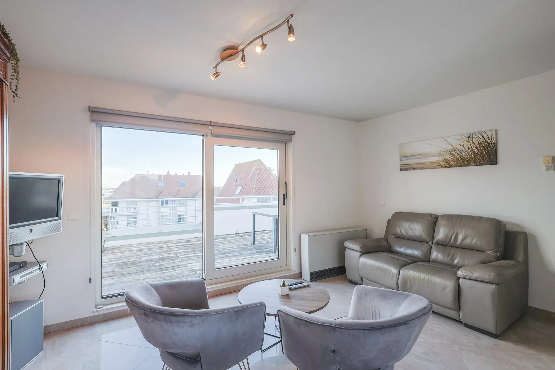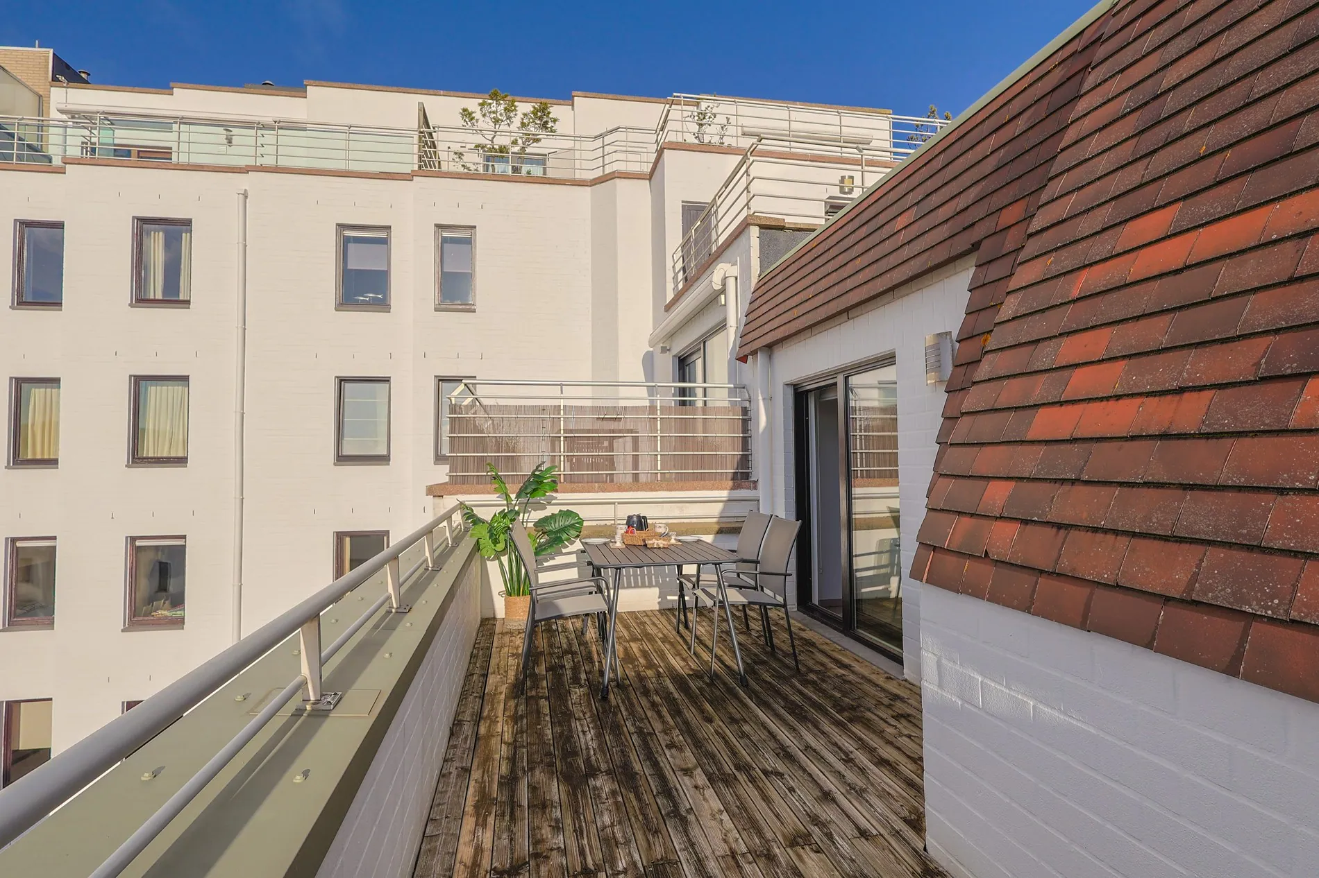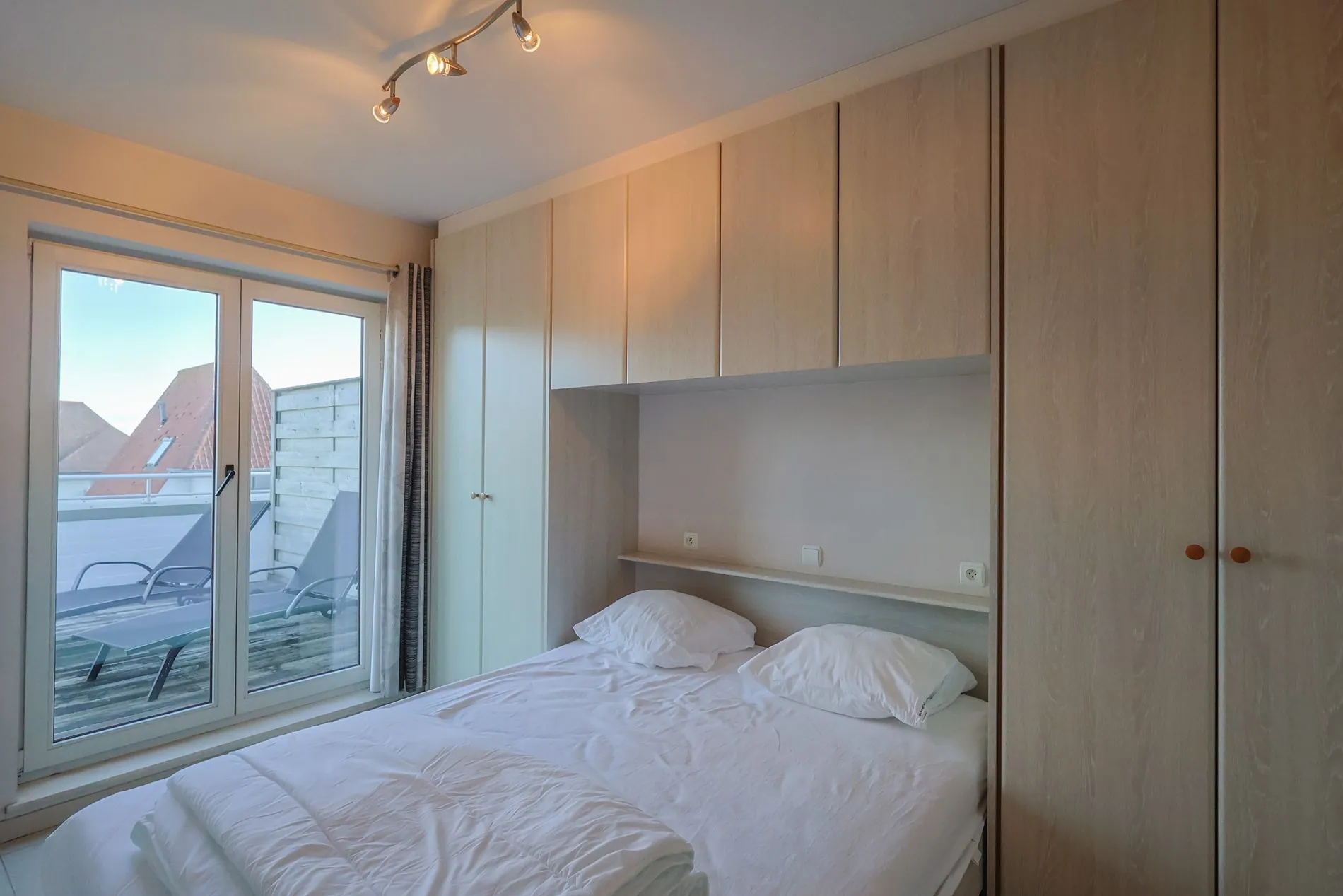 Dit moderne penthouse ligt in het hart van de badplaats, op wandelafstand van de dijk en het strand. De woning is geschikt voor vier personen en beschikt over een slaapkamer met tweepersoonsbed en een kamer met een stapelbed. De grote blikvanger zijn de twee royale zonneterrassen, die zowel aan de leefruimte als aan de slaapkamers grenzen. Het appartement is volledig gevloerd en beschikt over een badkamer met douche. Een privé-parking in het gebouw is inbegrepen. Een licht en comfortabel verblijf op een centrale toplocatie.