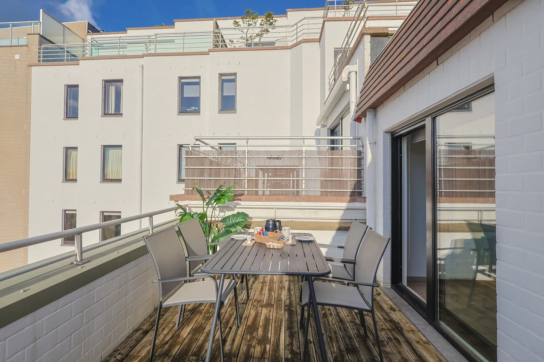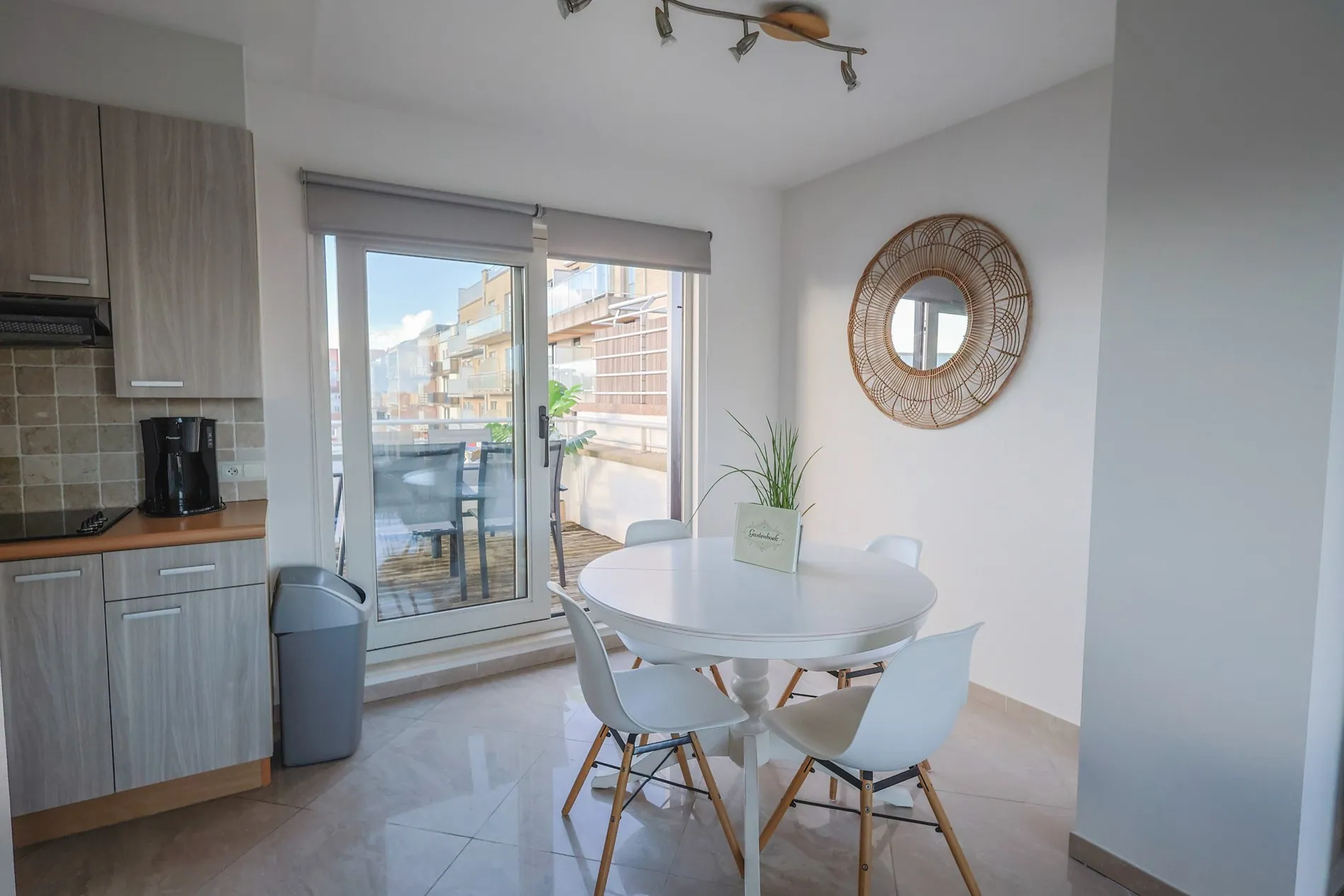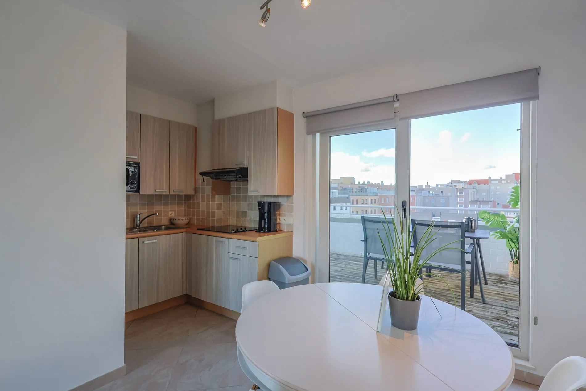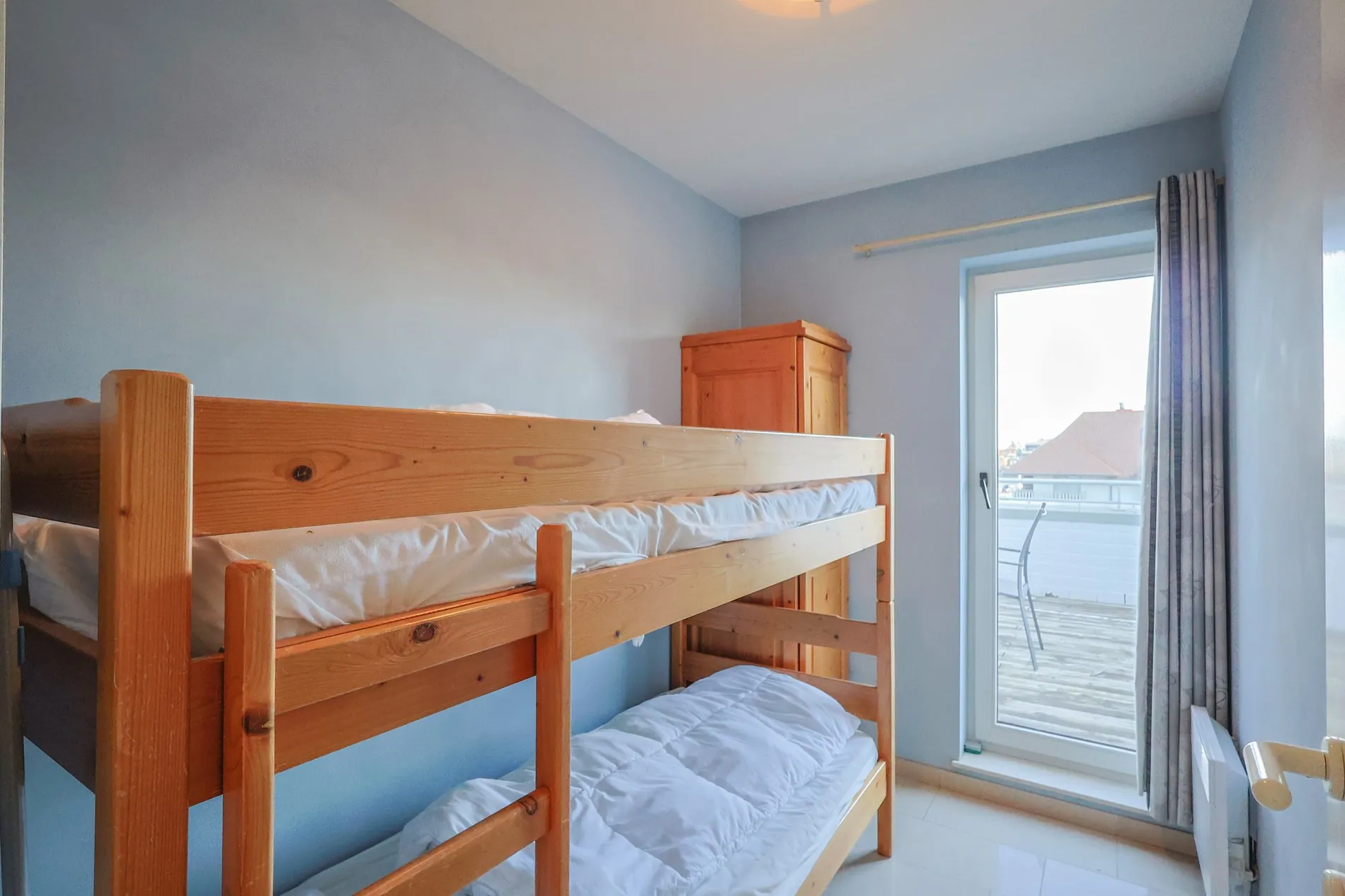 Dit moderne penthouse ligt in het hart van de badplaats, op wandelafstand van de dijk en het strand. De woning is geschikt voor vier personen en beschikt over een slaapkamer met tweepersoonsbed en een kamer met een stapelbed. De grote blikvanger zijn de twee royale zonneterrassen, die zowel aan de leefruimte als aan de slaapkamers grenzen. Het appartement is volledig gevloerd en beschikt over een badkamer met douche. Een privé-parking in het gebouw is inbegrepen. Een licht en comfortabel verblijf op een centrale toplocatie.