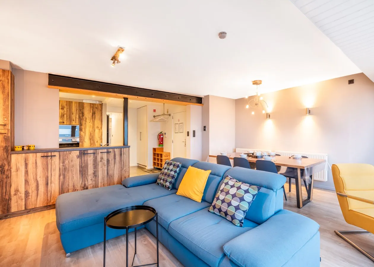 Vanuit de zonnige woonkamer op de zeedijk geniet je van een onbelemmerd, frontaal zicht op de golven. De open keuken sluit naadloos aan op het leefgedeelte en is volledig uitgerust voor elke maaltijd. De indeling voorziet in twee slaapkamers: de eerste kamer herbergt een tweepersoonsbed en grenst aan een balkon aan de zonzijde, terwijl de tweede kamer met een dubbel stapelbed moeiteloos plaats biedt aan vier personen. Als luxe extra is de woning uitgerust met een eigen infraroodsauna voor totale ontspanning.