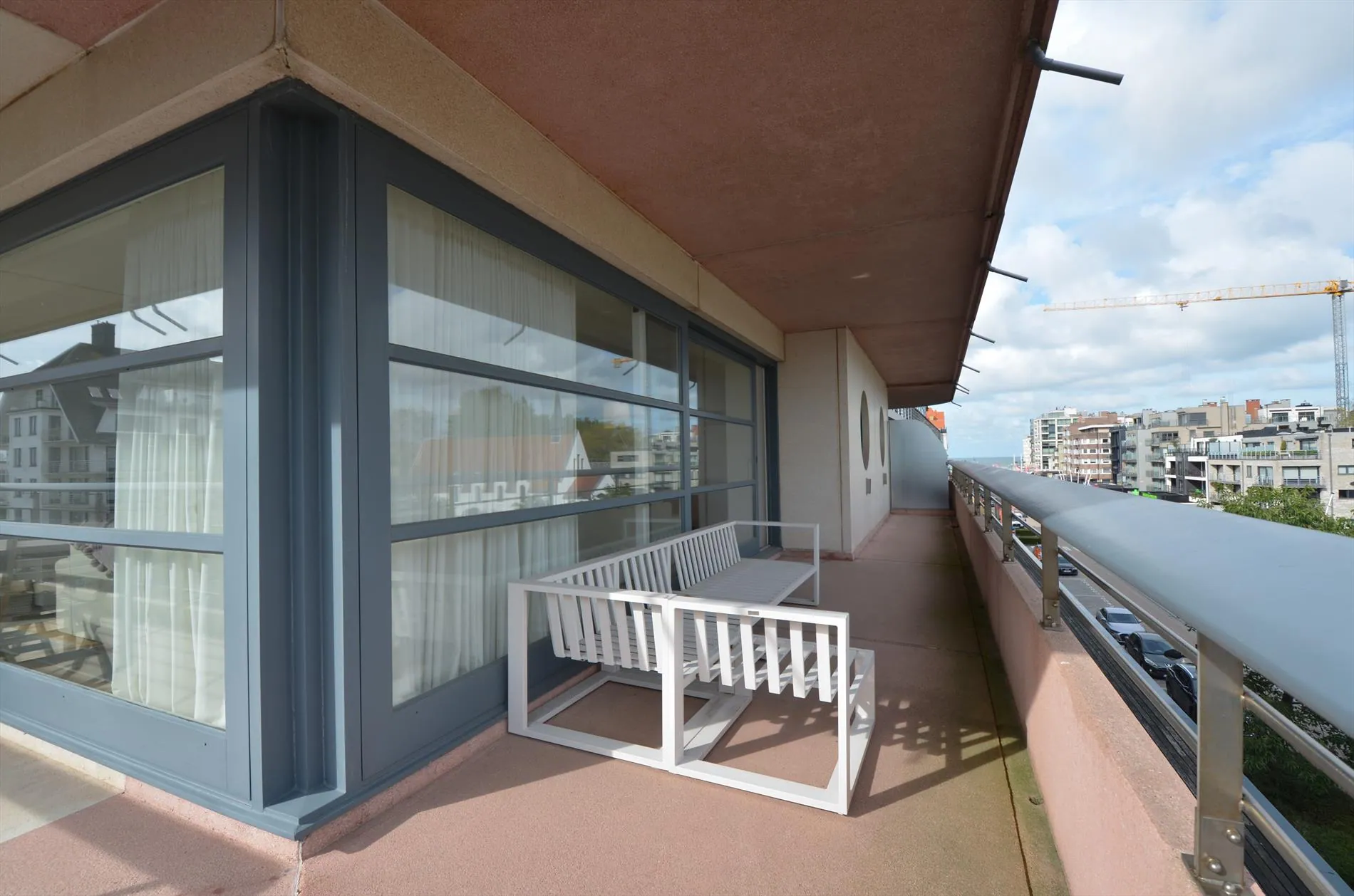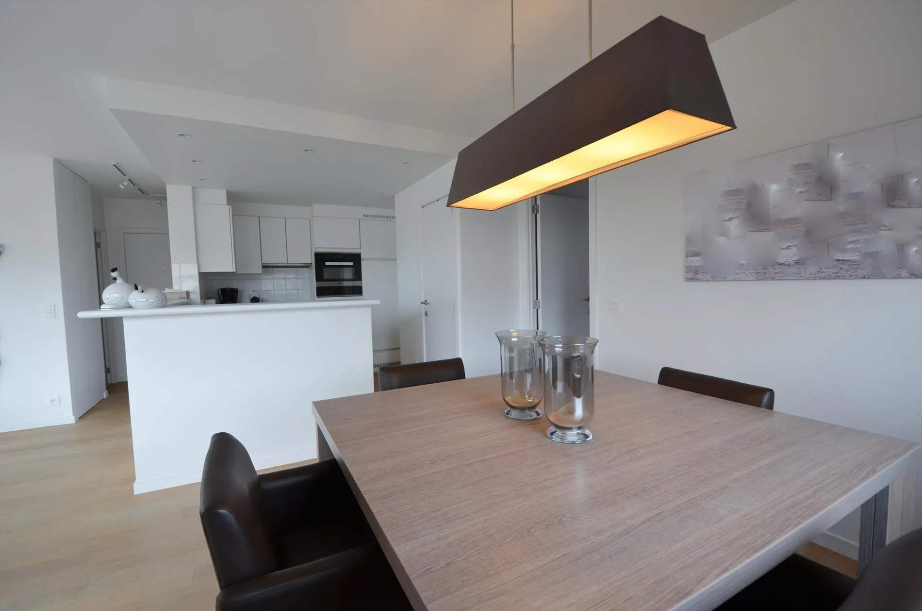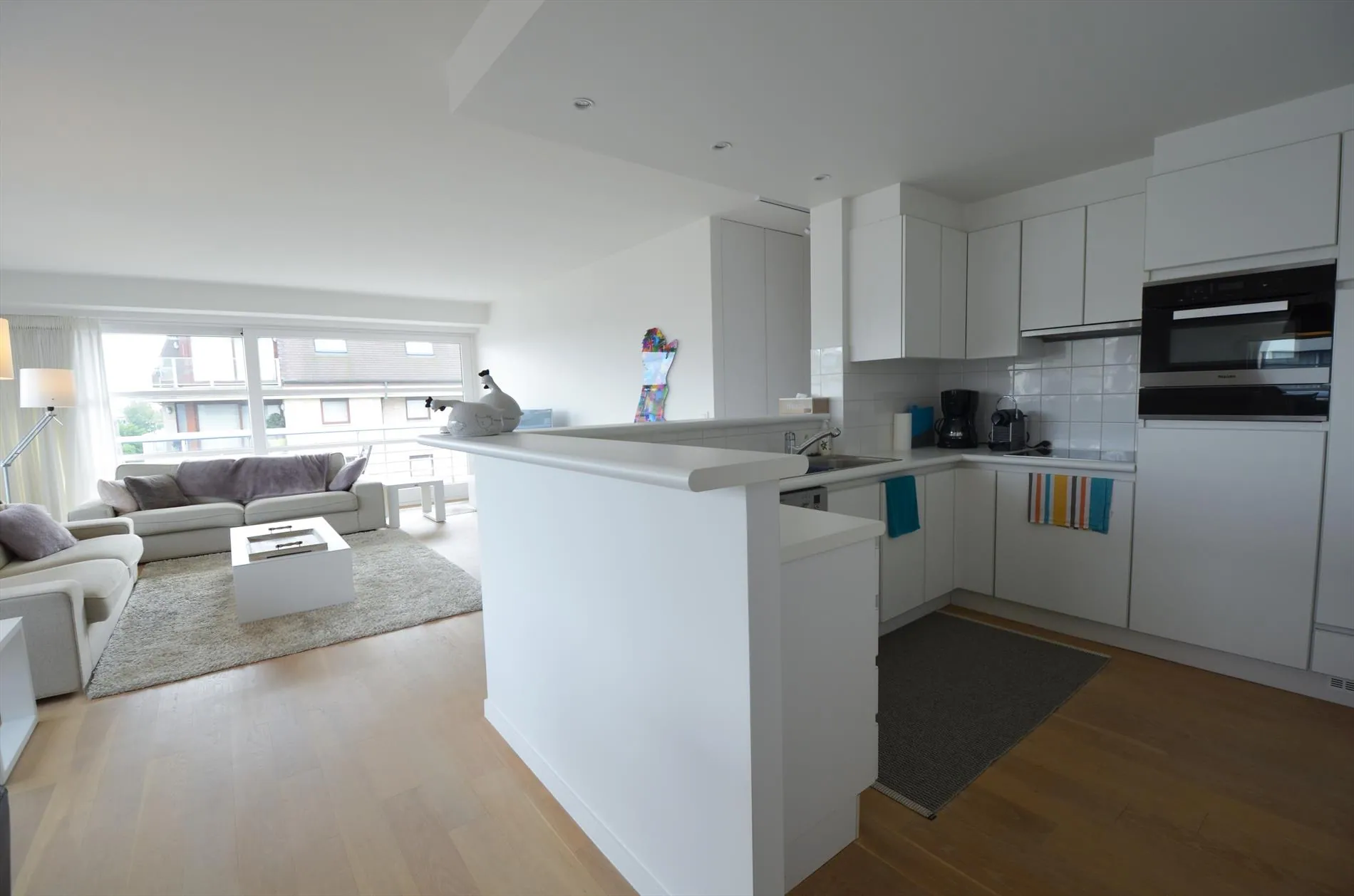Dit hoekappartement aan de statige Leopold II-laan valt op door de rijke lichtinval in de woonkamer, die direct toegang biedt tot het terras. De moderne open keuken en een berging met wasvoorzieningen sluiten hier naadloos op aan. Naast een slaapkamer met vestiaire en een badkamer met inloopdouche beschikt de woning over een tweede kamer met stapelbed en een apart toilet. Een privégaragebox is inbegrepen in het verblijf.