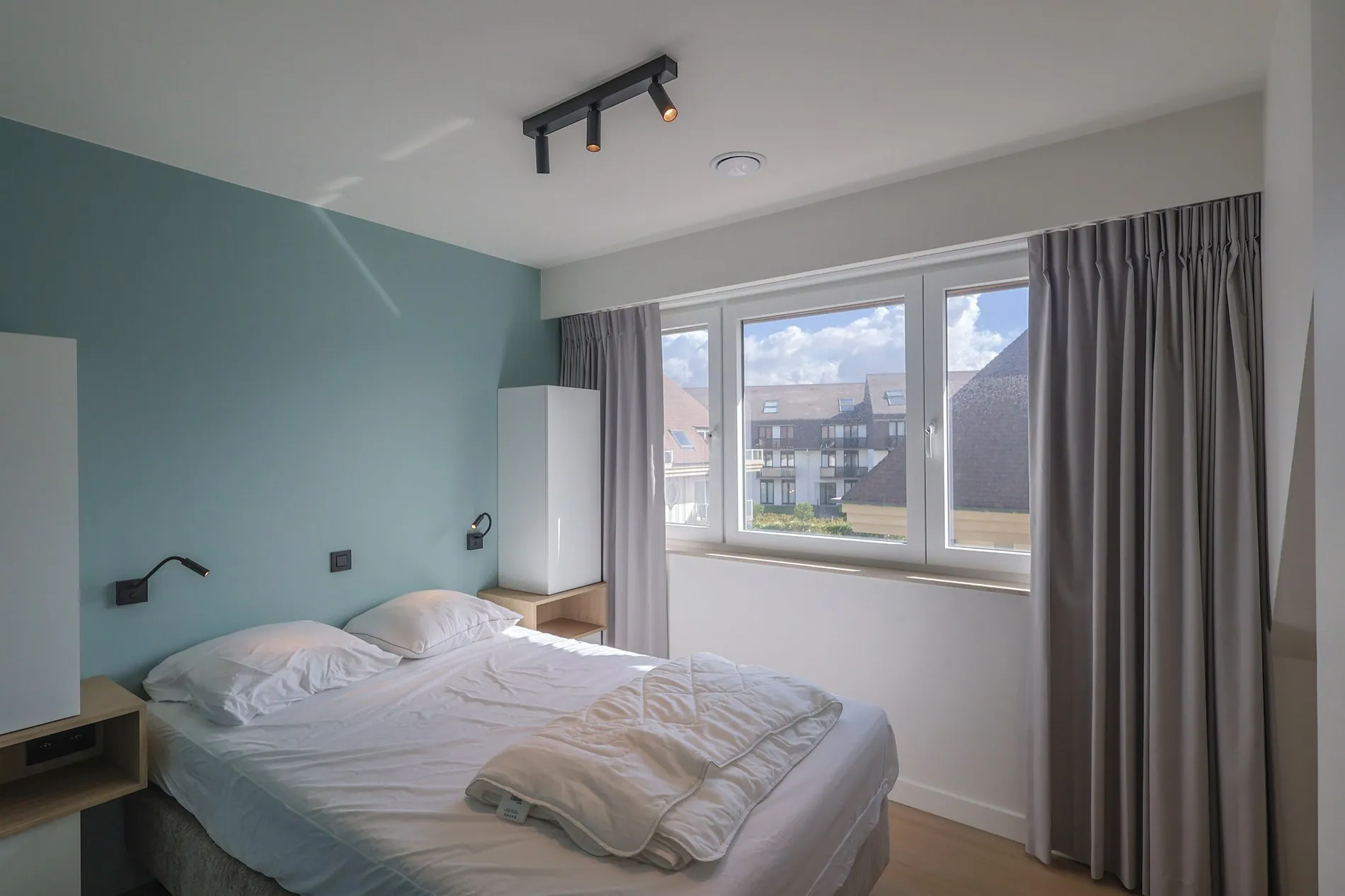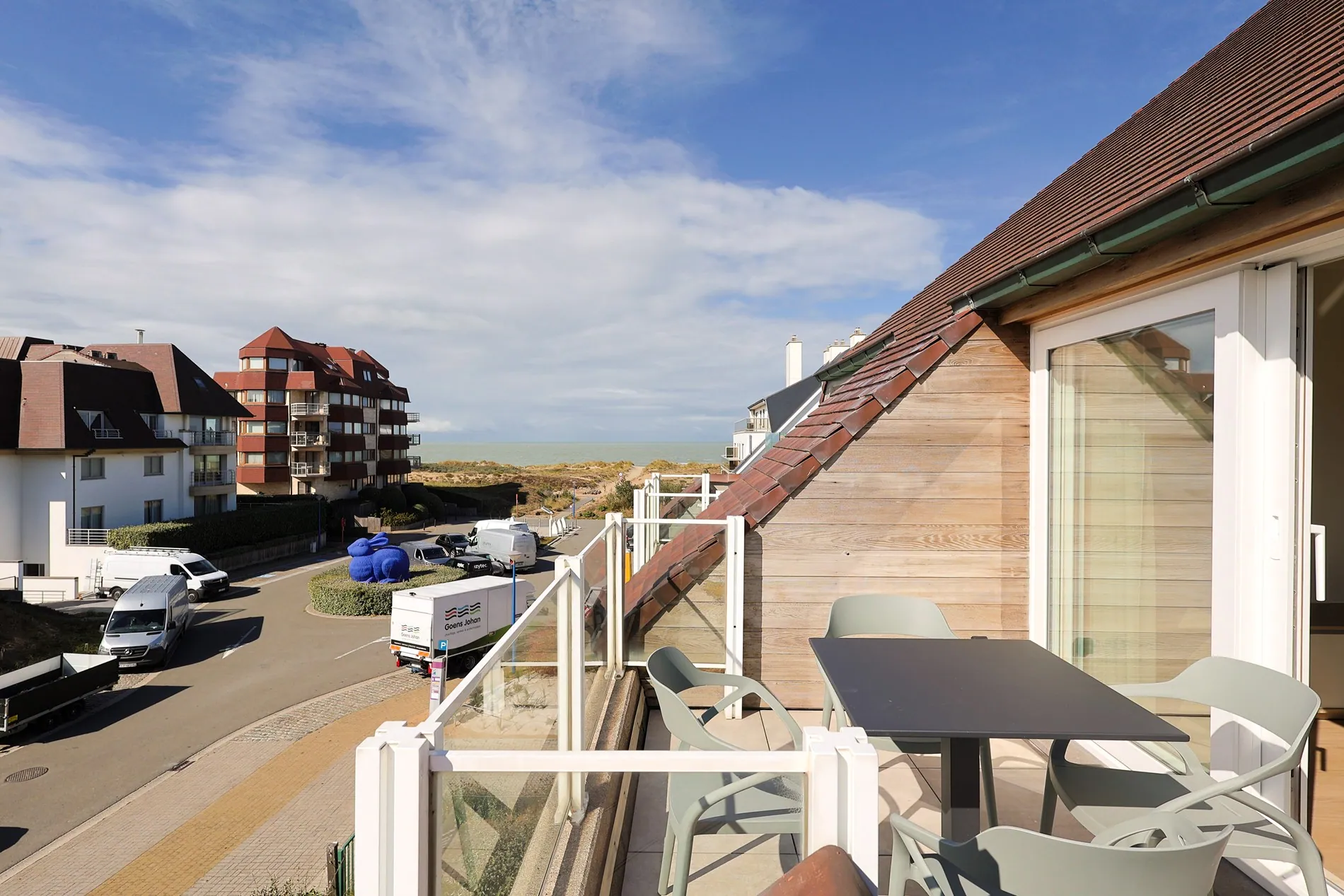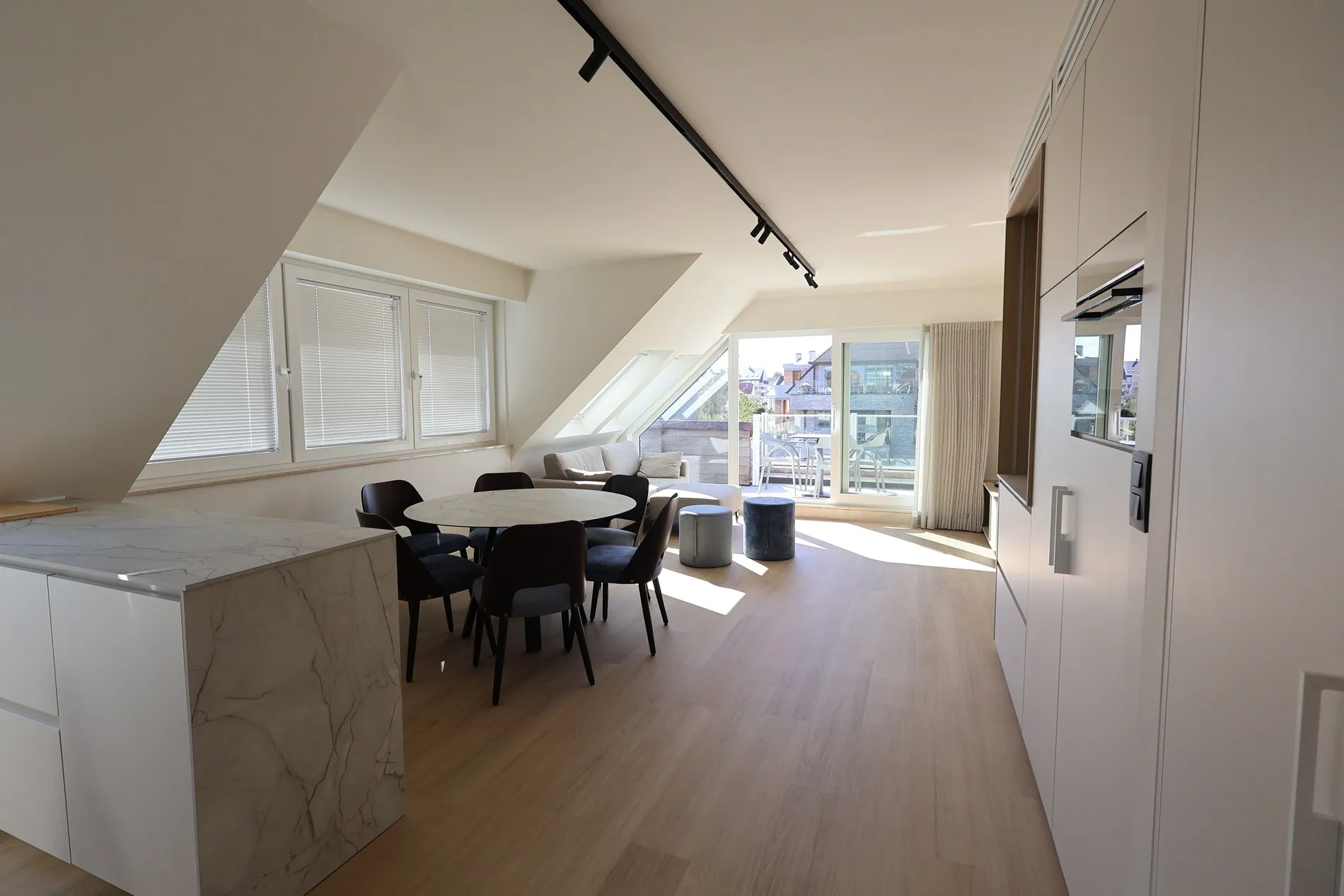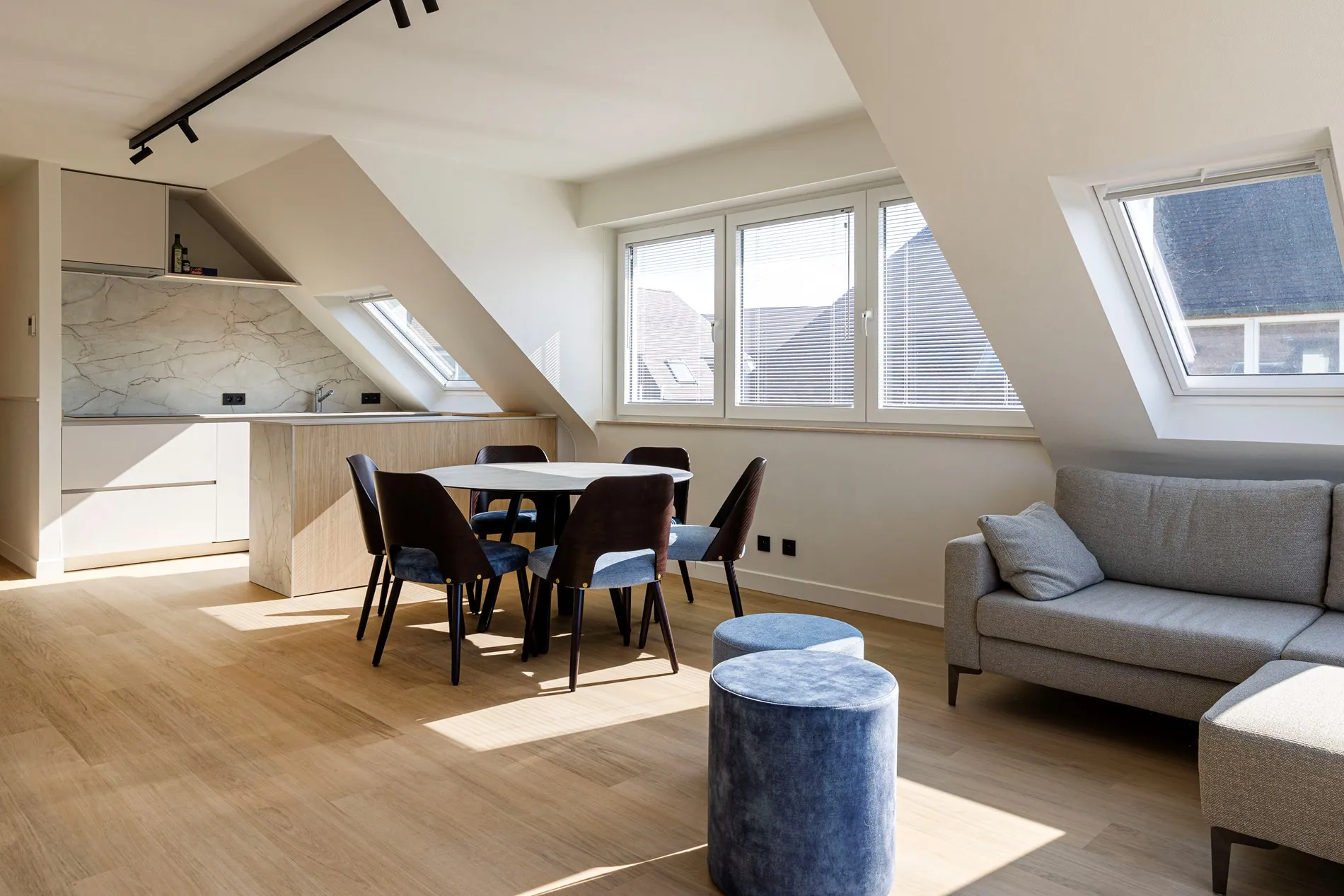 Warme parketvloeren en een verfijnde afwerking typeren dit appartement op de tweede verdieping. De leefruimte sluit aan op een zonnig terras met een zijdelings zeezicht. De indeling met twee slaapkamers, een badkamer met ligbad én een aparte douchekamer garandeert een hoogstaand comfort. Een private garagebox onder het gebouw is inbegrepen. Met zowel de zeedijk als het centrum van Oostduinkerke vlakbij, betreft dit een toplocatie.
