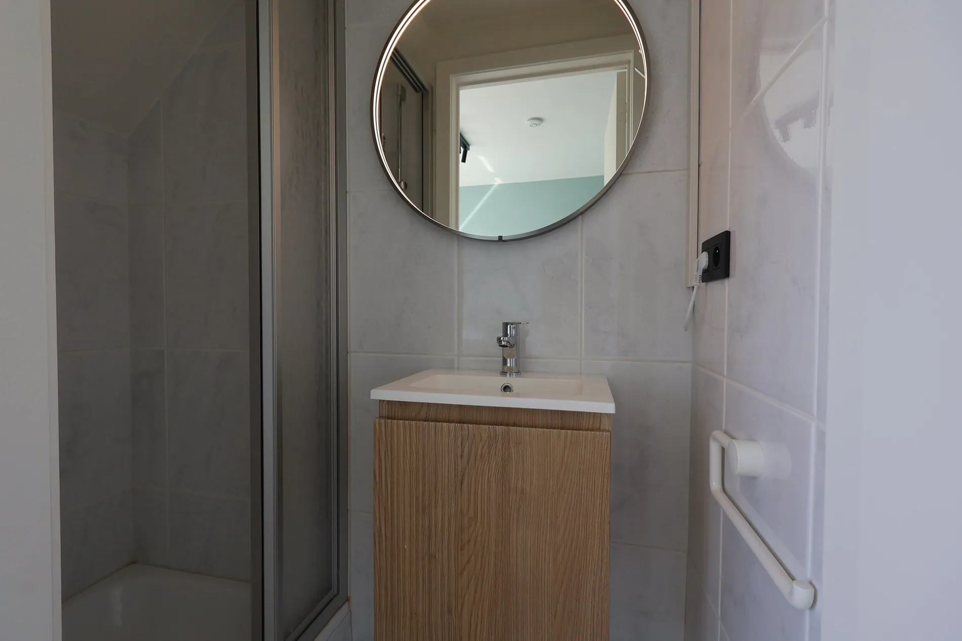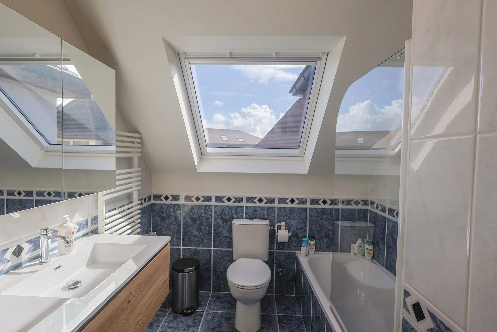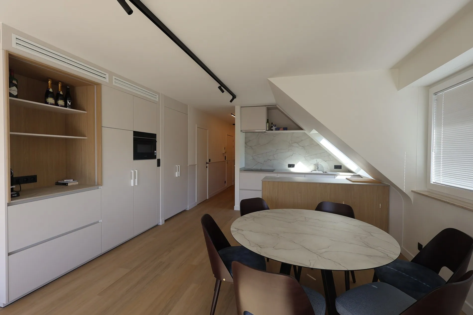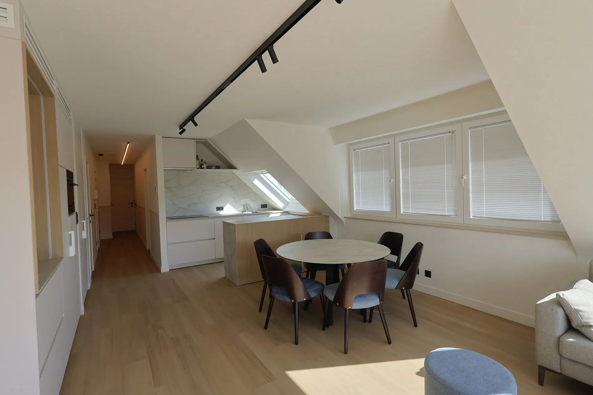 Warme parketvloeren en een verfijnde afwerking typeren dit appartement op de tweede verdieping. De leefruimte sluit aan op een zonnig terras met een zijdelings zeezicht. De indeling met twee slaapkamers, een badkamer met ligbad én een aparte douchekamer garandeert een hoogstaand comfort. Een private garagebox onder het gebouw is inbegrepen. Met zowel de zeedijk als het centrum van Oostduinkerke vlakbij, betreft dit een toplocatie.