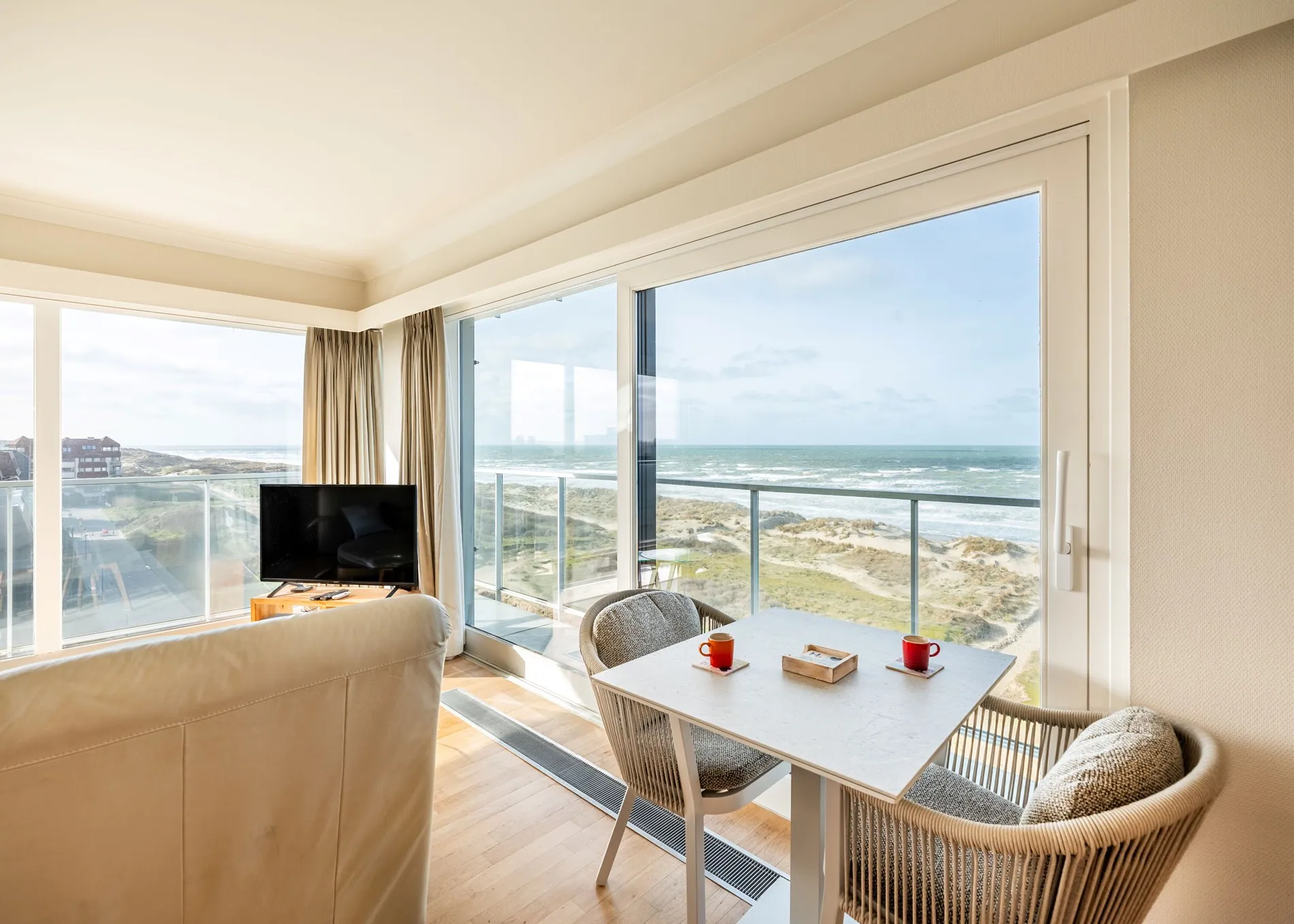 Dit verzorgde appartement met parketvloer biedt vanuit de ruime woonkamer een weids zicht rondom op zee. De woning is voorzien van modern comfort en beschikt over twee slaapkamers met tweepersoonsbedden en een badkamer met douche. Een bijbehorende garagebox onder het IJslandplein is inbegrepen. Een comfortabel verblijf op een centrale locatie direct aan de kust.