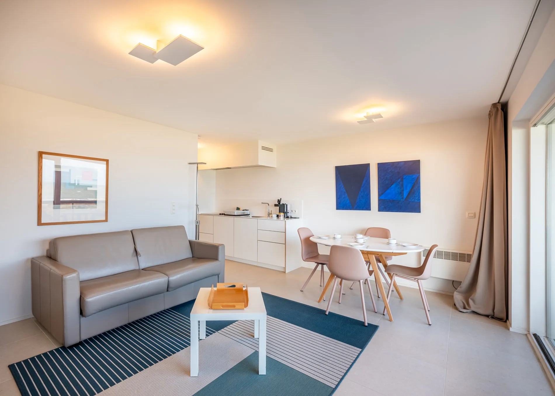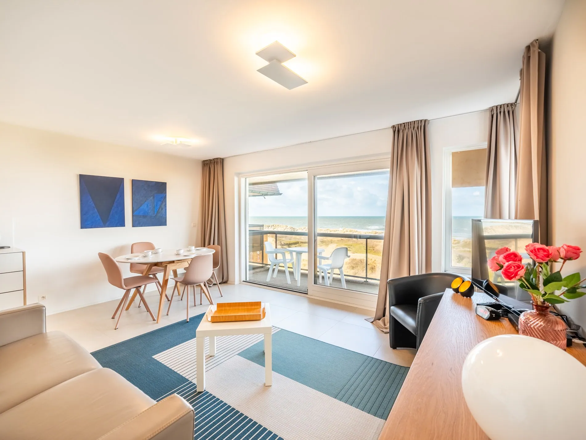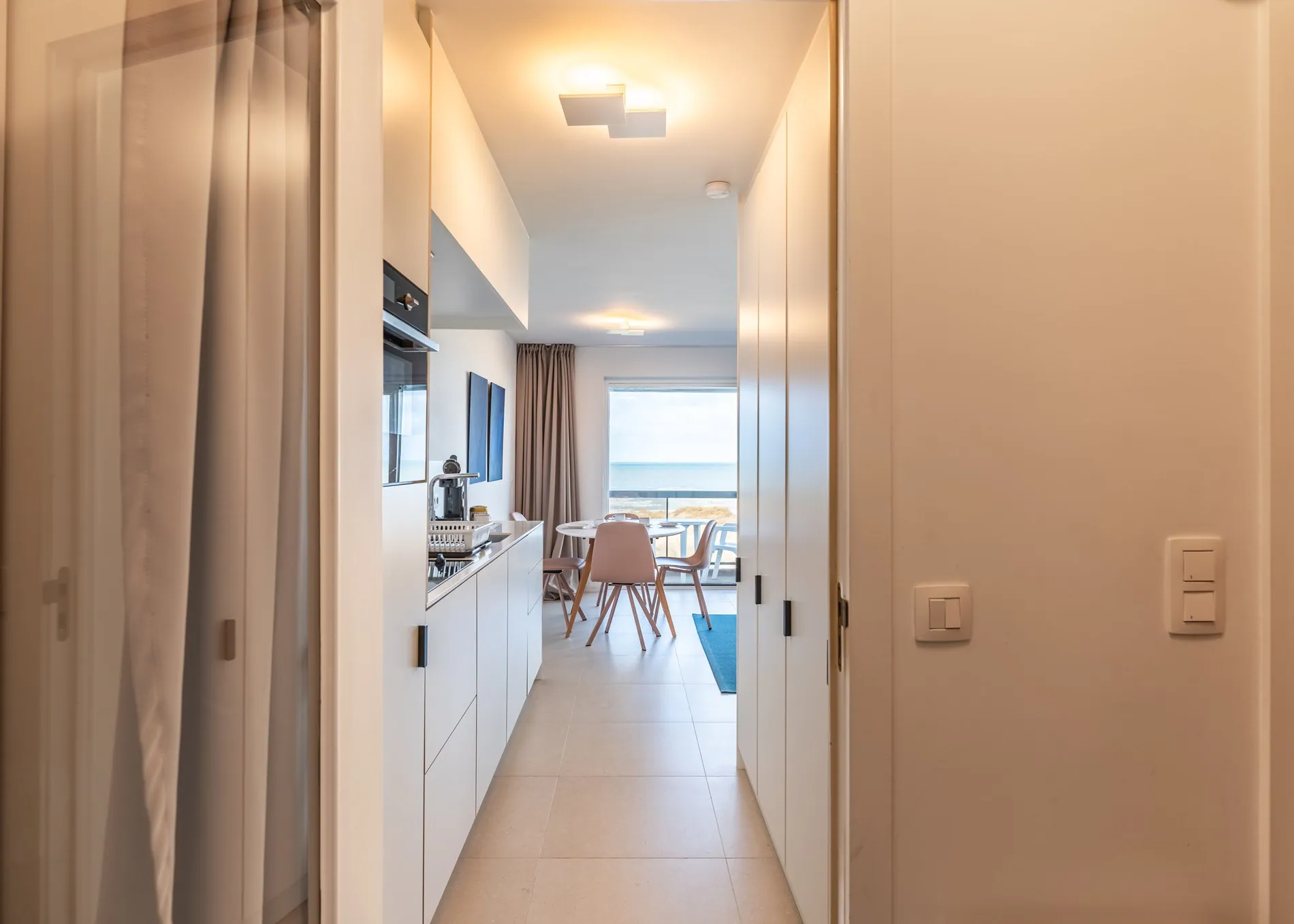 Deze studio heeft een mooi frontaal zeezicht en is gelegen op de 3e verdieping. Mooie ruime woonkamer en sluit direct aan op het terras aan de zeedijk. Qua indeling beschikt de woning over een slaaphoek met een stapelbed in de inkomhal, moderne badkamer met douche, toilet en lavabo, een tweepersoonsdivanbed in de woonkamer en een uitgeruste keuken.De privégaragebox is in het gebouw gelegen. Kortom hier kan u alleen maar genieten !